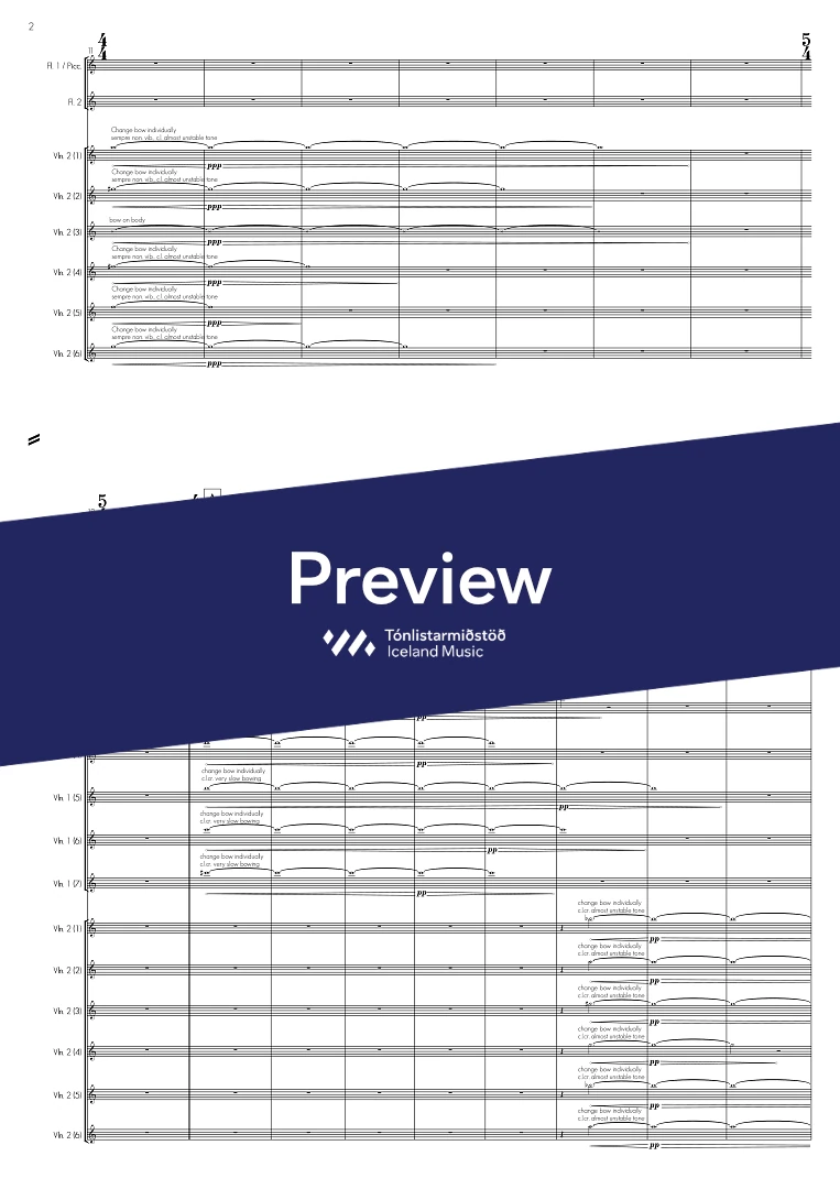 2 violins, 2 violas, 2 celli & percussion. Floor projected vdeo (animated score)-DMX controlled music-stand lights with incandescent lightbulbs (fade-able)