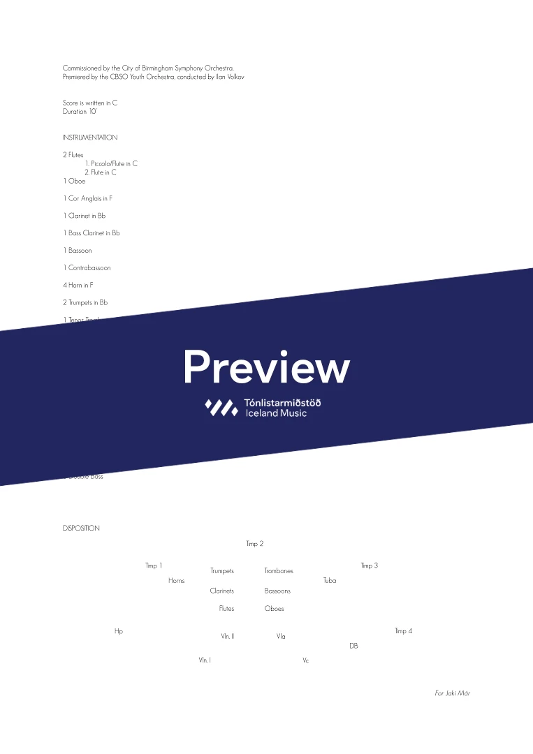 Instrumentation 2(1pic).2(1ca).2(1bcl).2(1cbn) / 4.2.2(1btrb).1. / 4timp / hrp strings