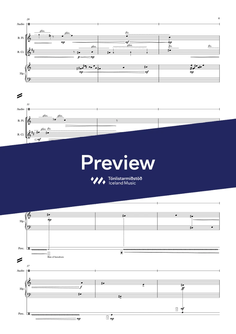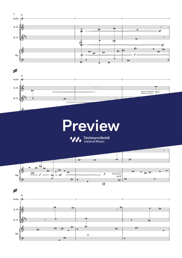 InstrumentationBass Flute, Bass Clarinet, Percussion, Harp, Electronics