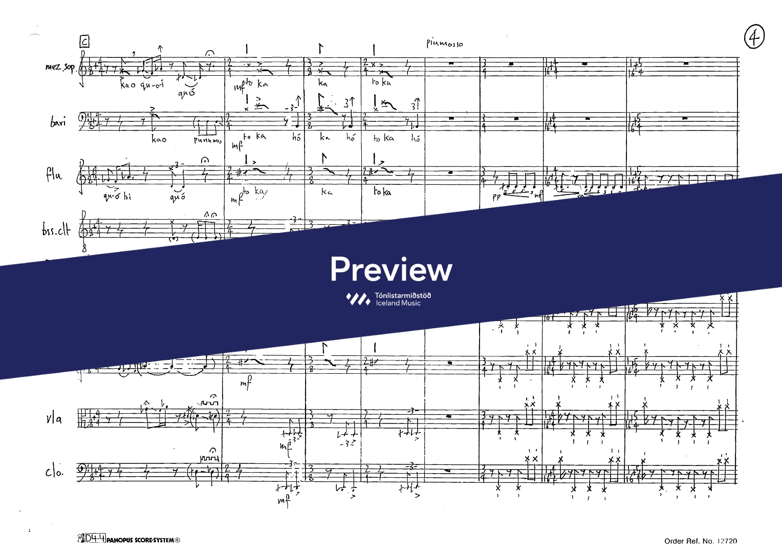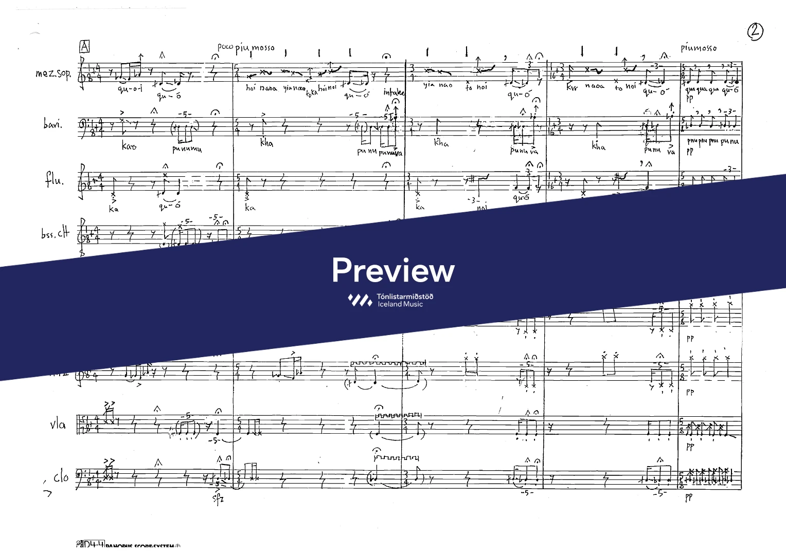 InstrumentationFlute, Bass Clarinet, Percussion, Mezzo-soprano, Baritone, Female choir / Children’s choir, Violin, Viola, Cello