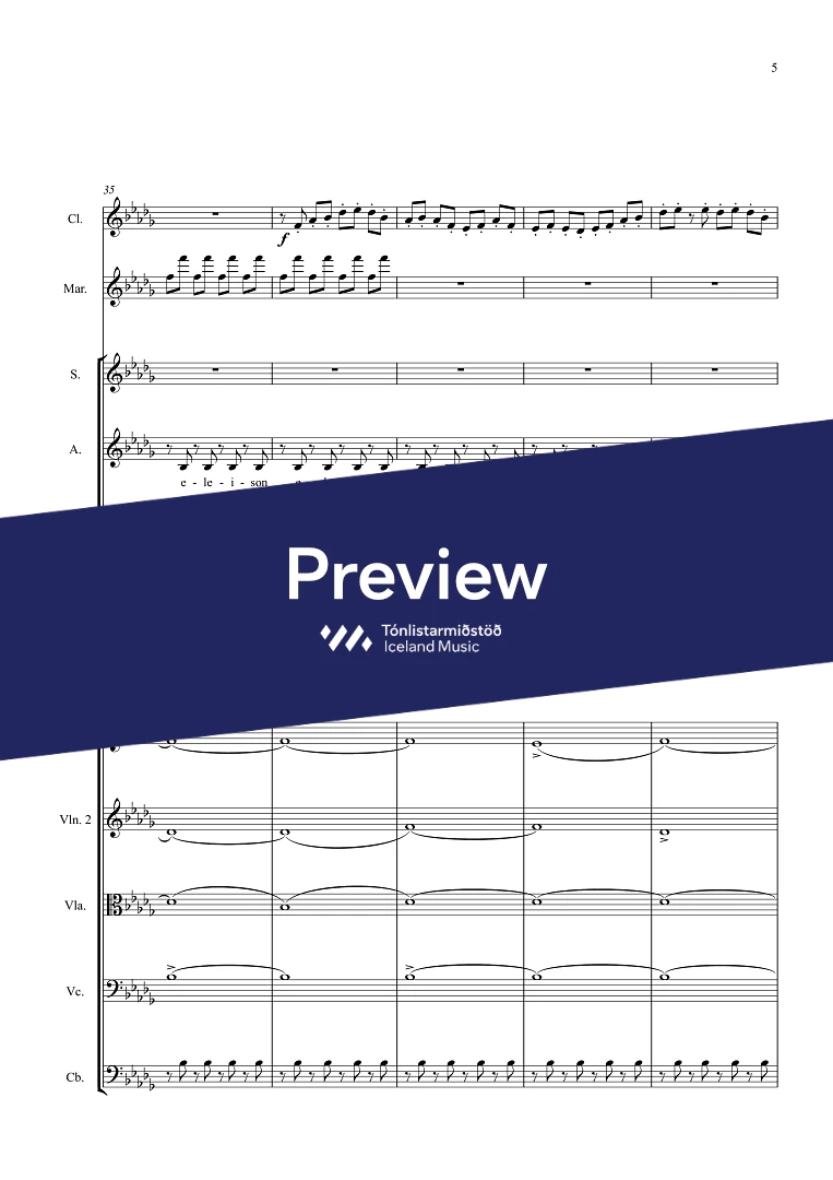 InstrumentationClarinet in Bb, French Horn, Marimba, Mixed choir, Strings