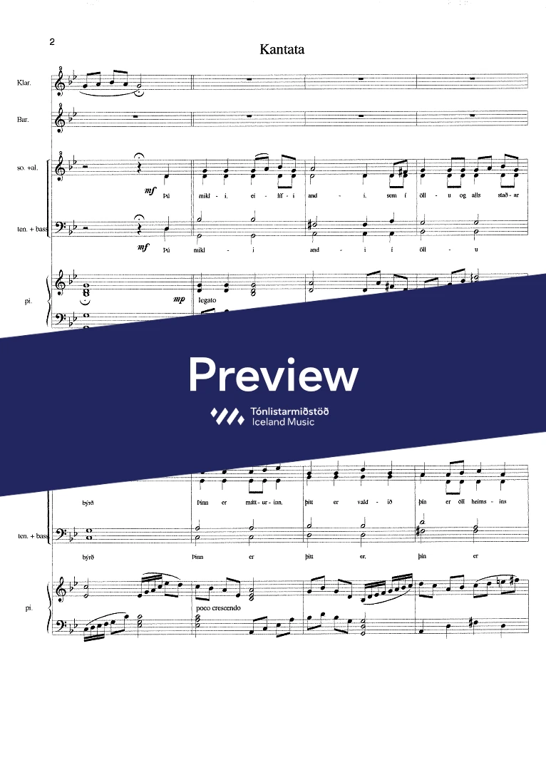 2,(picc.),2,2(Bcl.) 2 - 2 2 2 1 - tmp. - perc. - Sop. Ten. - SATB - str.