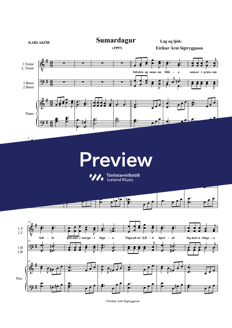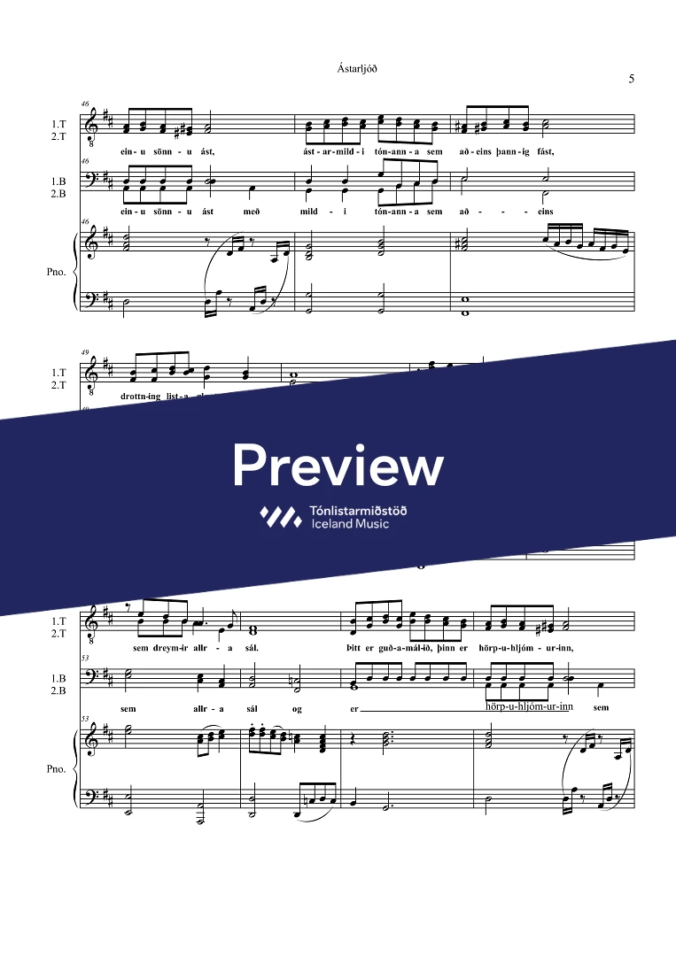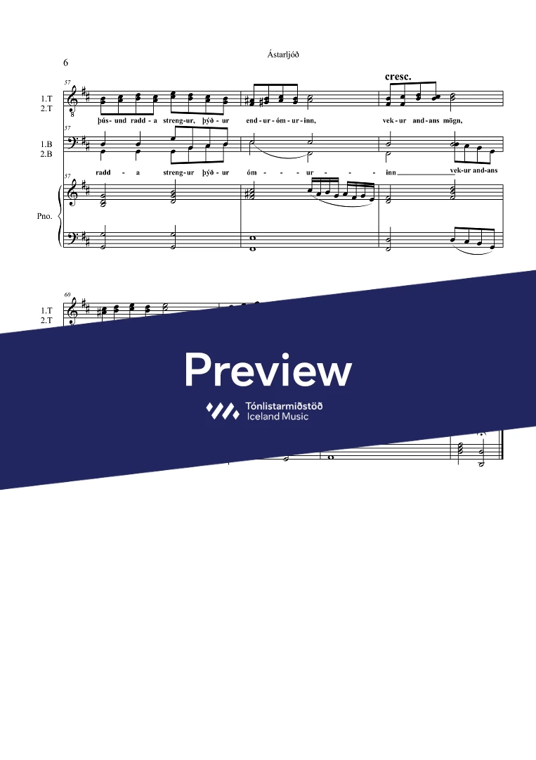 2,(picc.),2,2(Bcl.) 2 - 2 2 2 1 - tmp. - perc. - Sop. Ten. - SATB - str.