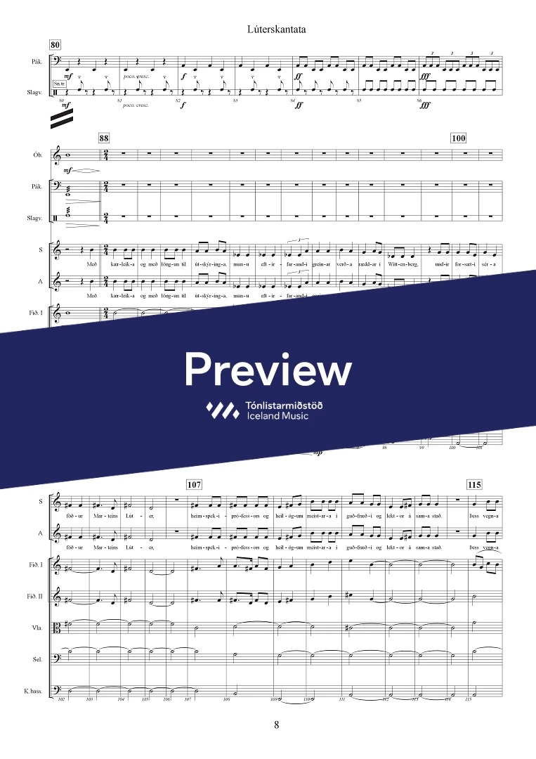 2,(picc.),2,2(Bcl.) 2 - 2 2 2 1 - tmp. - perc. - Sop. Ten. - SATB - str.