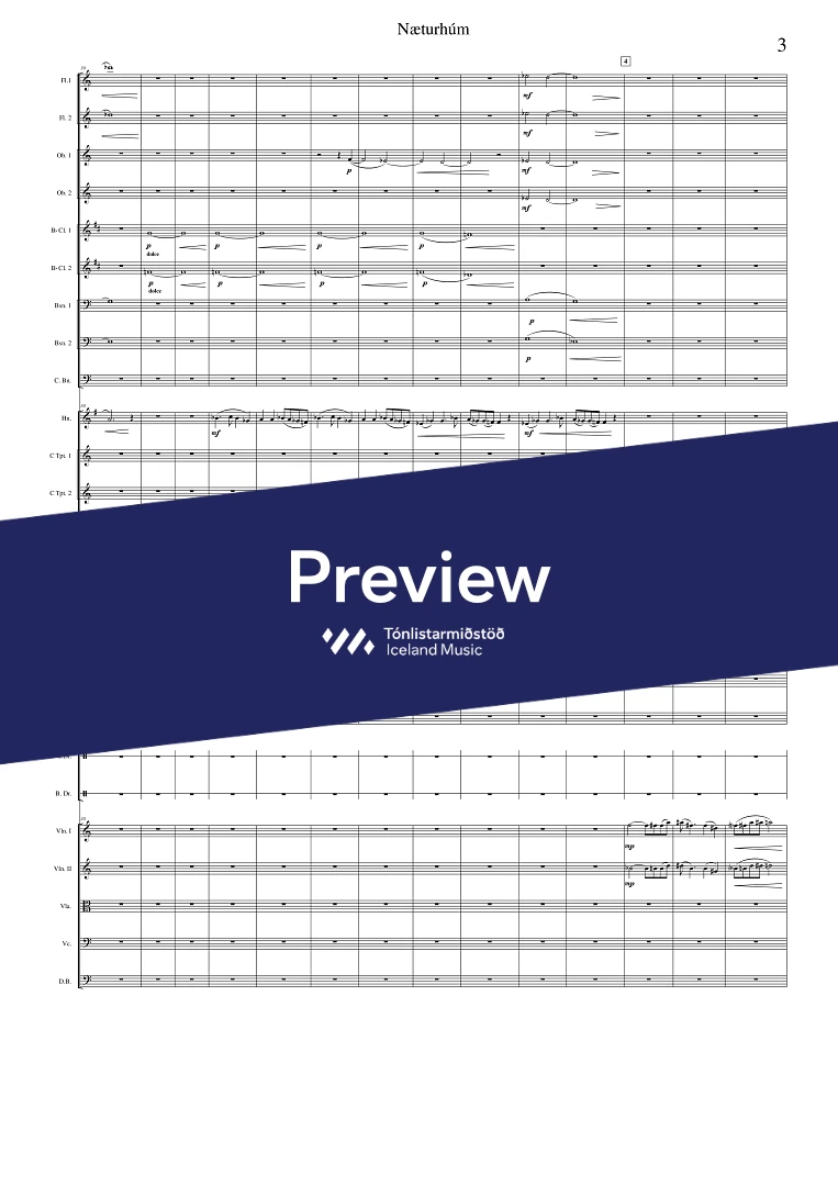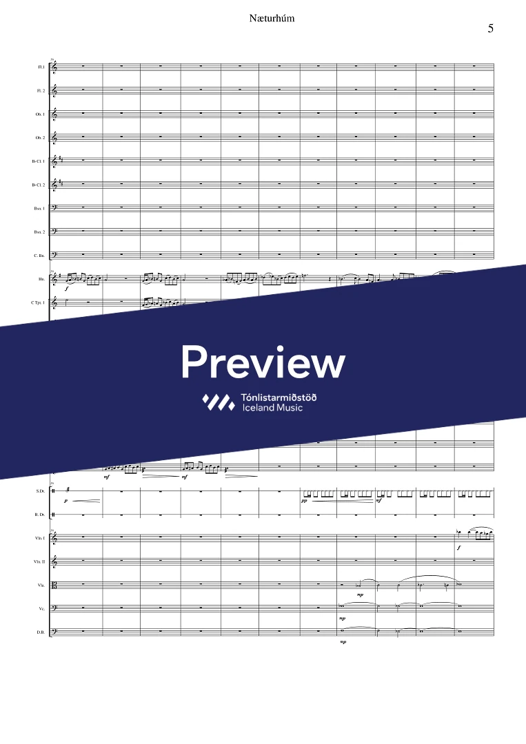 2,2,2,2(Cbn.) - 0,2,2,1 - tmp. - perc. - solo horn - str.