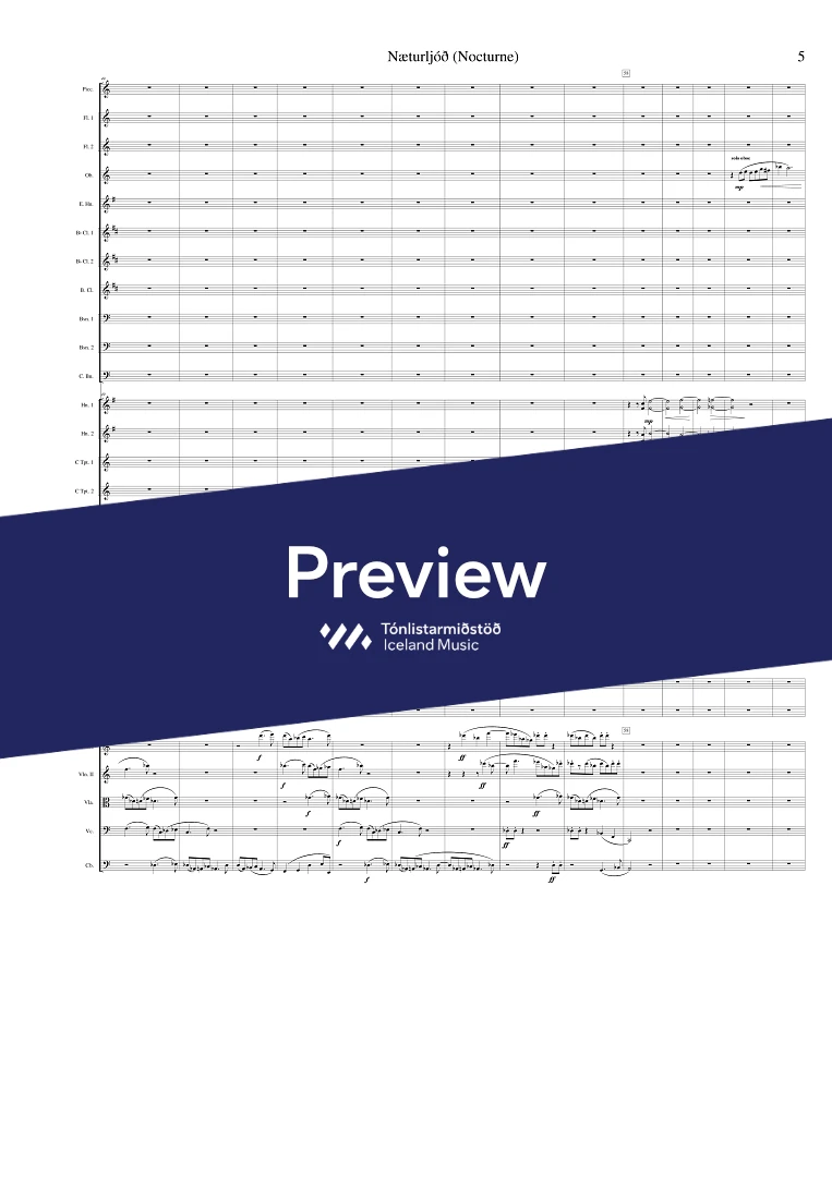 2,2,2,2(Cbn.) - 0,2,2,1 - tmp. - perc. - solo horn - str.
