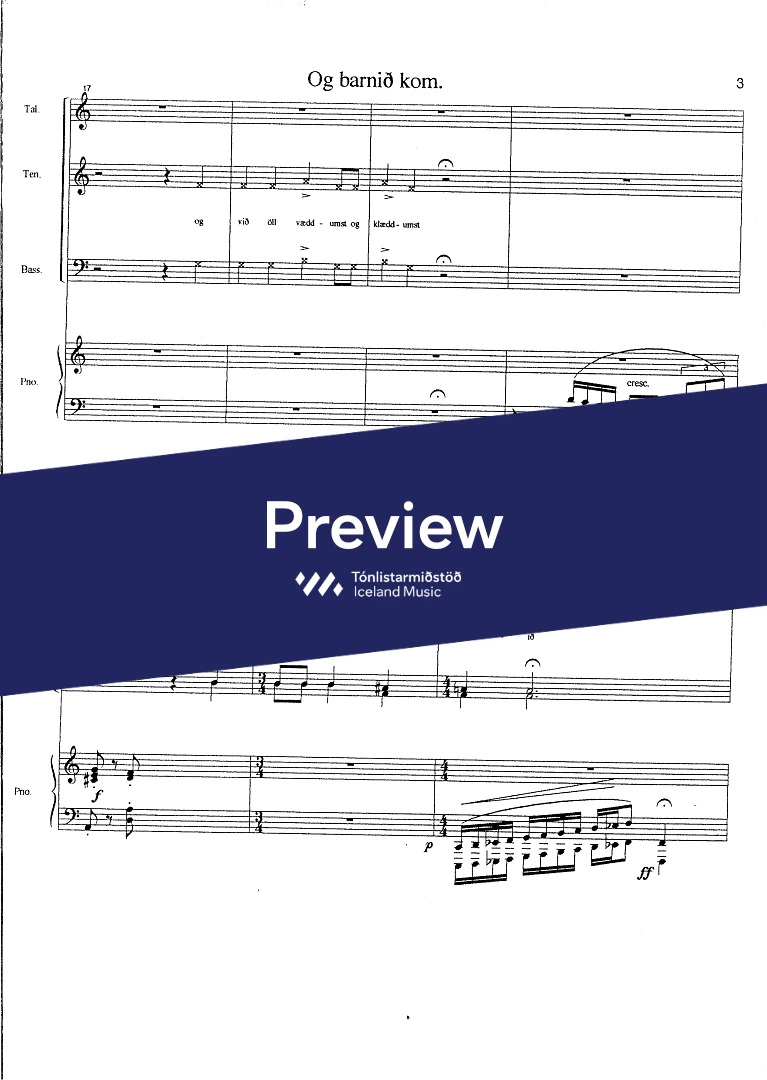 2,(picc.),2,2(Bcl.) 2 - 2 2 2 1 - tmp. - perc. - Sop. Ten. - SATB - str.