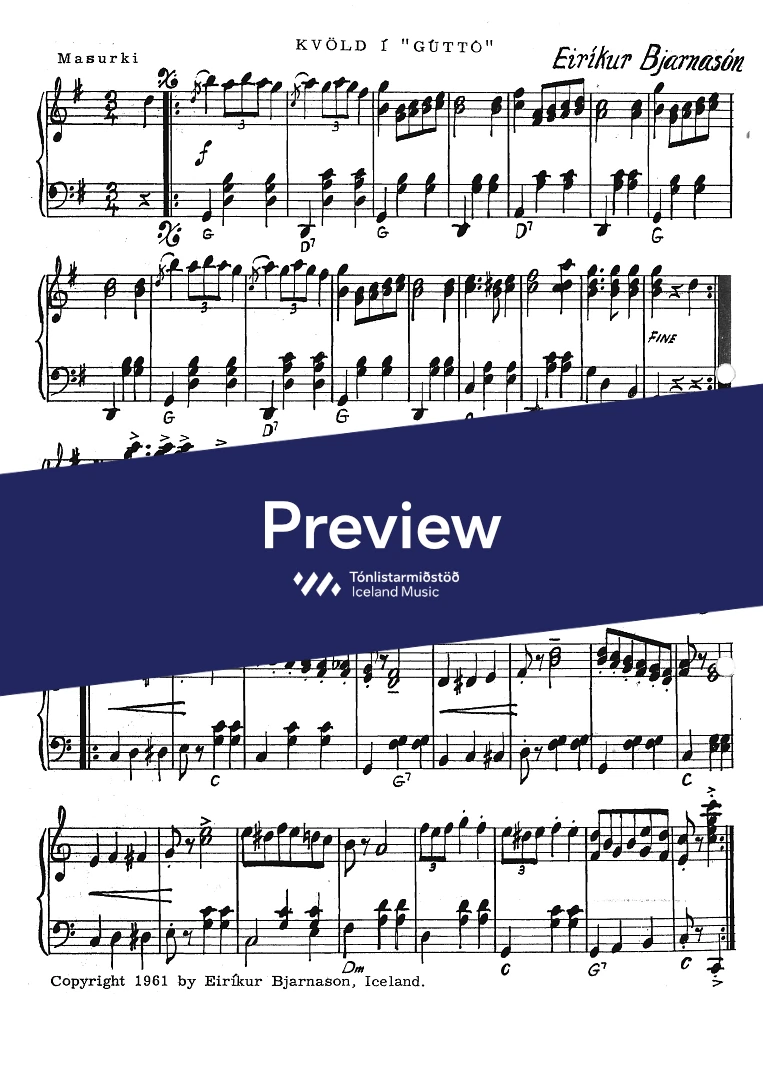 Composer Eiríkur Bjarnason Year composed1961 Categories Solo works, Leadsheet InstrumentationPiano, Accordion Catalogue no.086-002 ISMN-