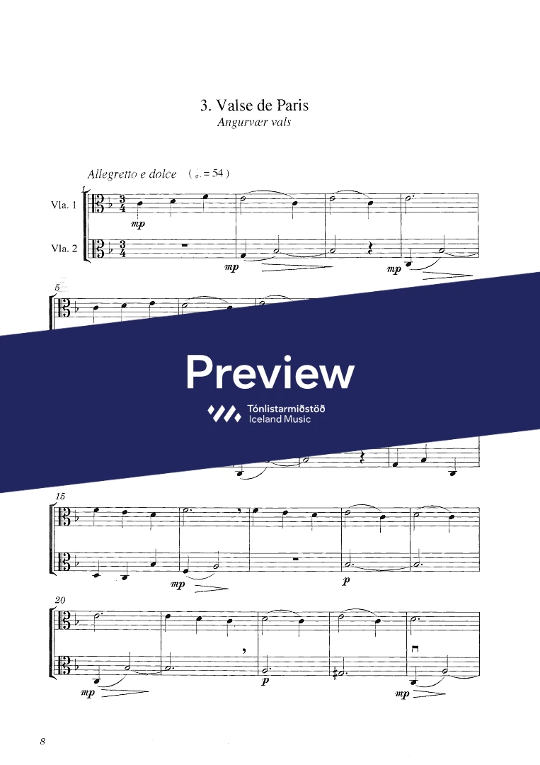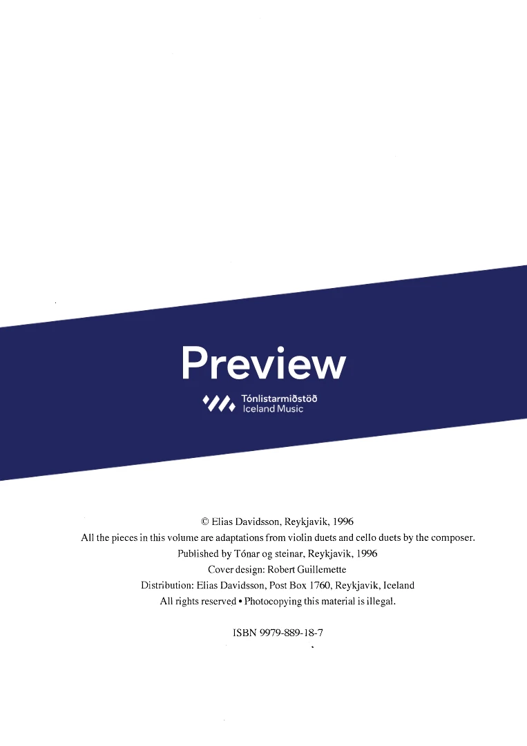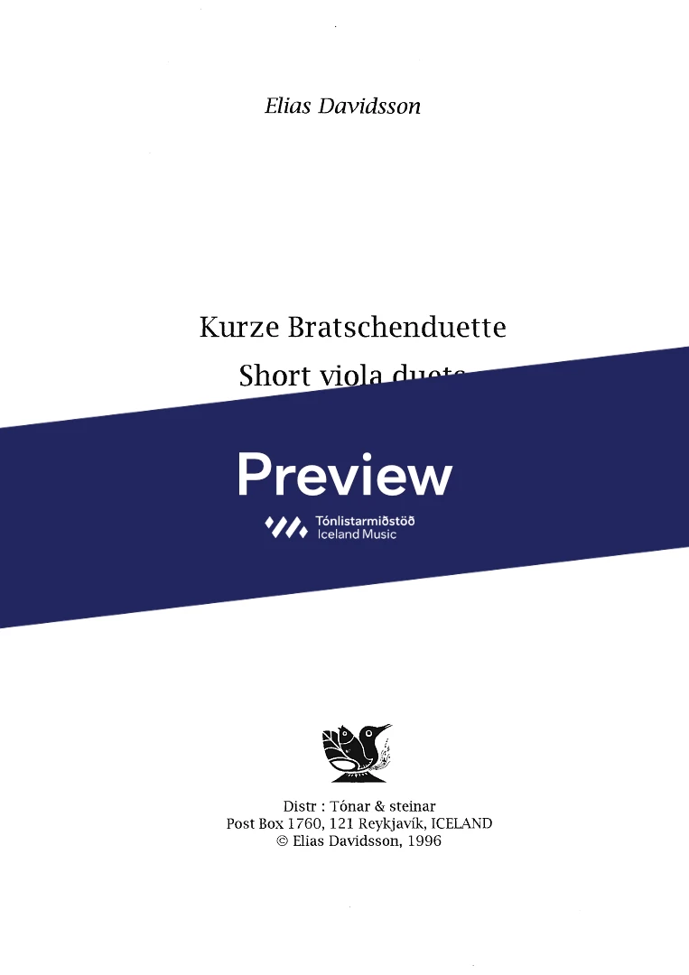 Composer Elías Davíðsson Year composed- Categories Trio, String music, Instrumental Duo, Chamber works InstrumentationViola Catalogue no.039-905 ISMN-