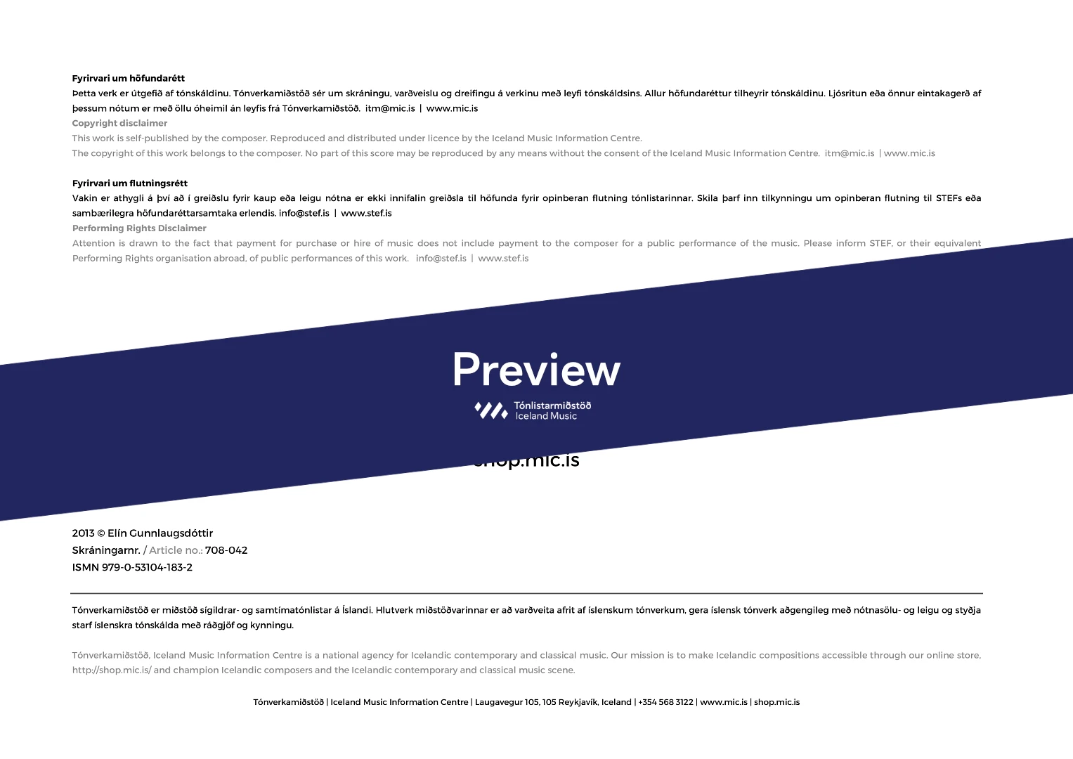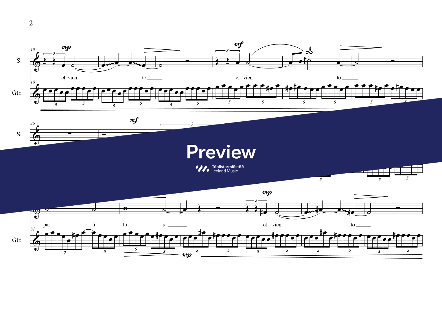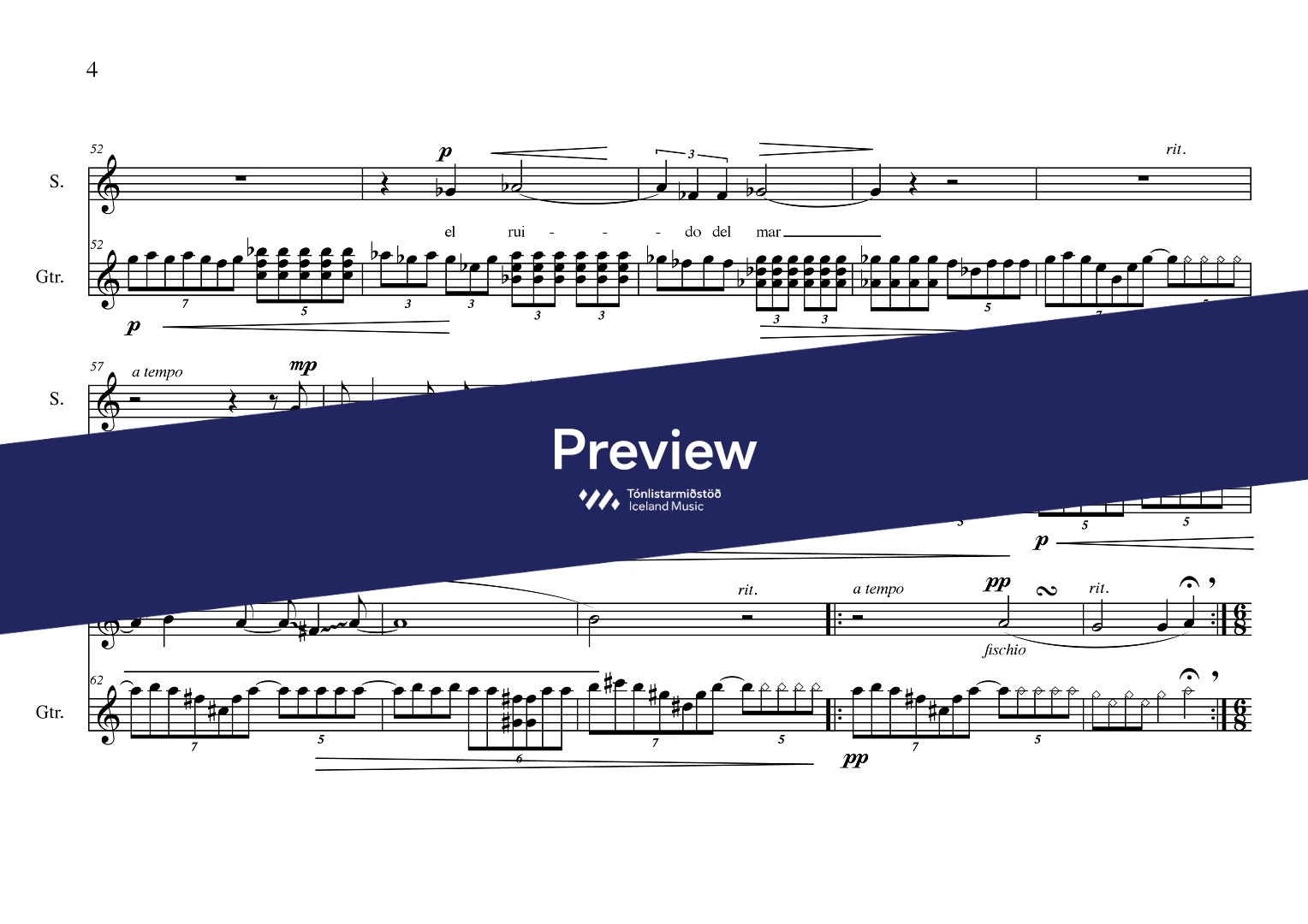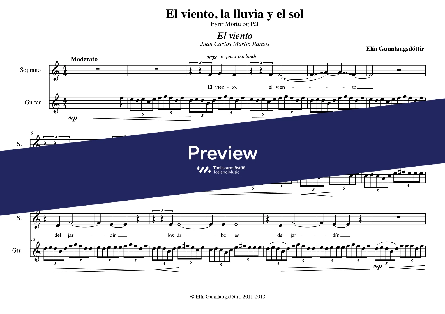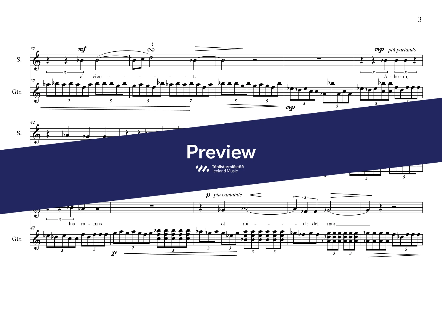 Commissioned by Páll Eyjólfsson. First performance of the whole piece: 1. June 2013 at Gljúfrasteinn - Marta Guðrún Halldórsdóttir, Soprano & Páll Eyjólfsson, guitar,