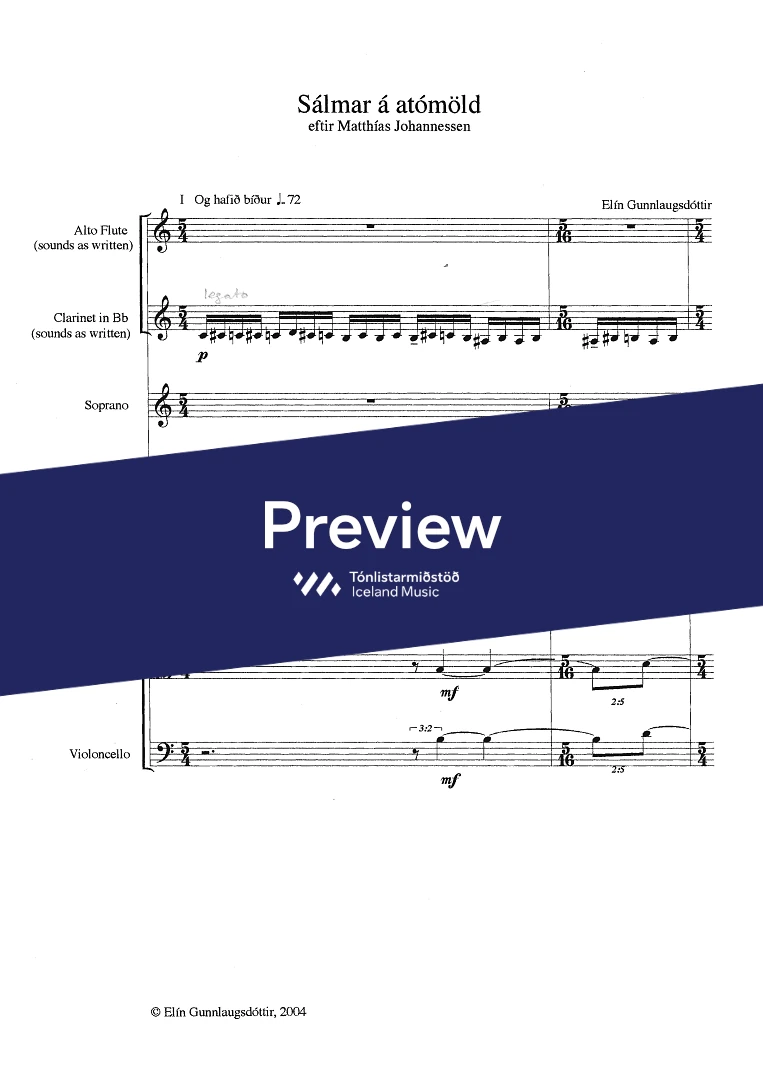 InstrumentationFlute, Alto Flute, Clarinet in Bb, Bass Clarinet, Soprano, Strings