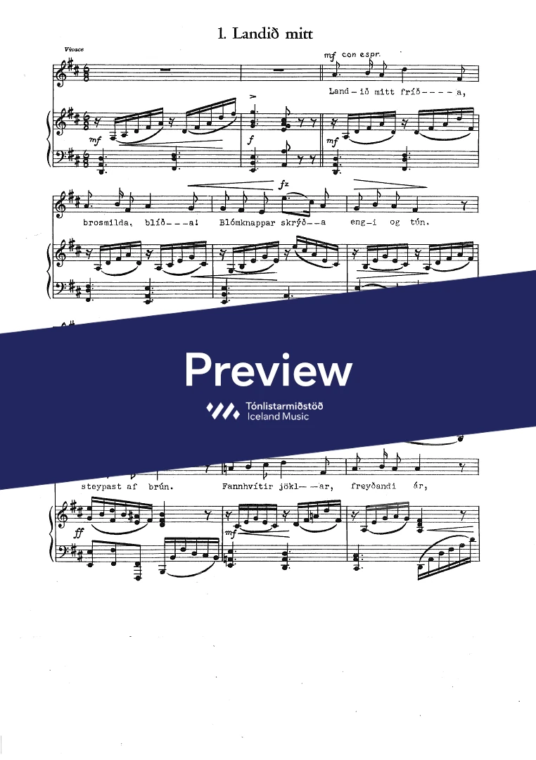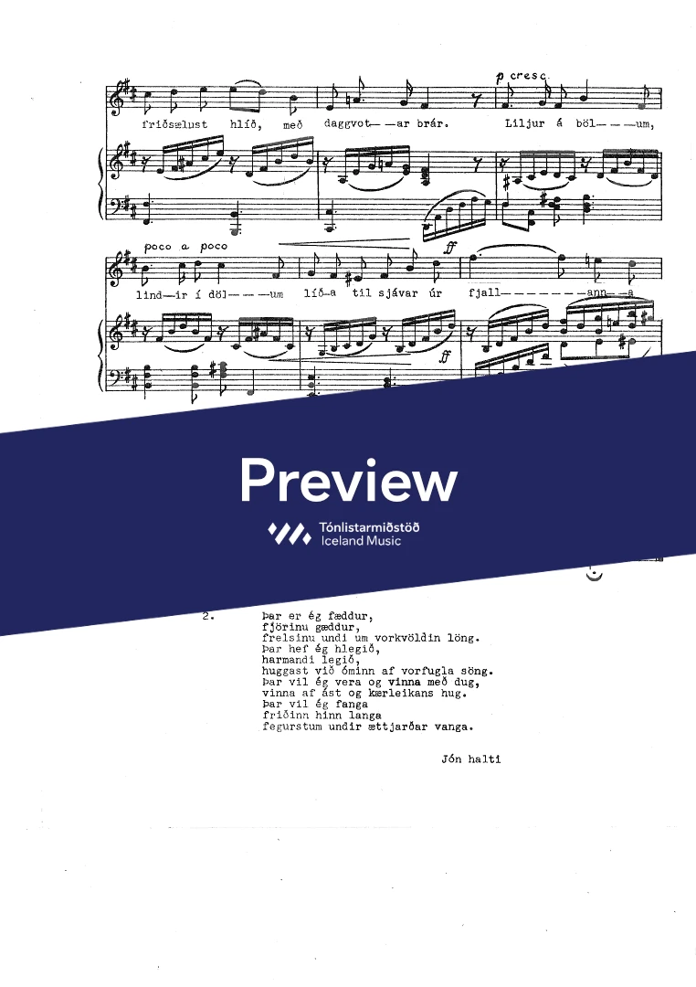 Text sampleLandið mitt fríða, brosmilda, blíða!