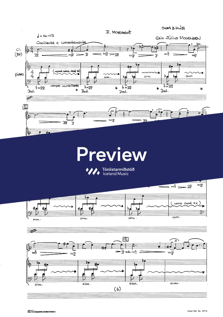 2(picc.)2,2(Bcl.) 2 - 2,2,2,0 - - perc. - tmp. -str. - solo clarinet