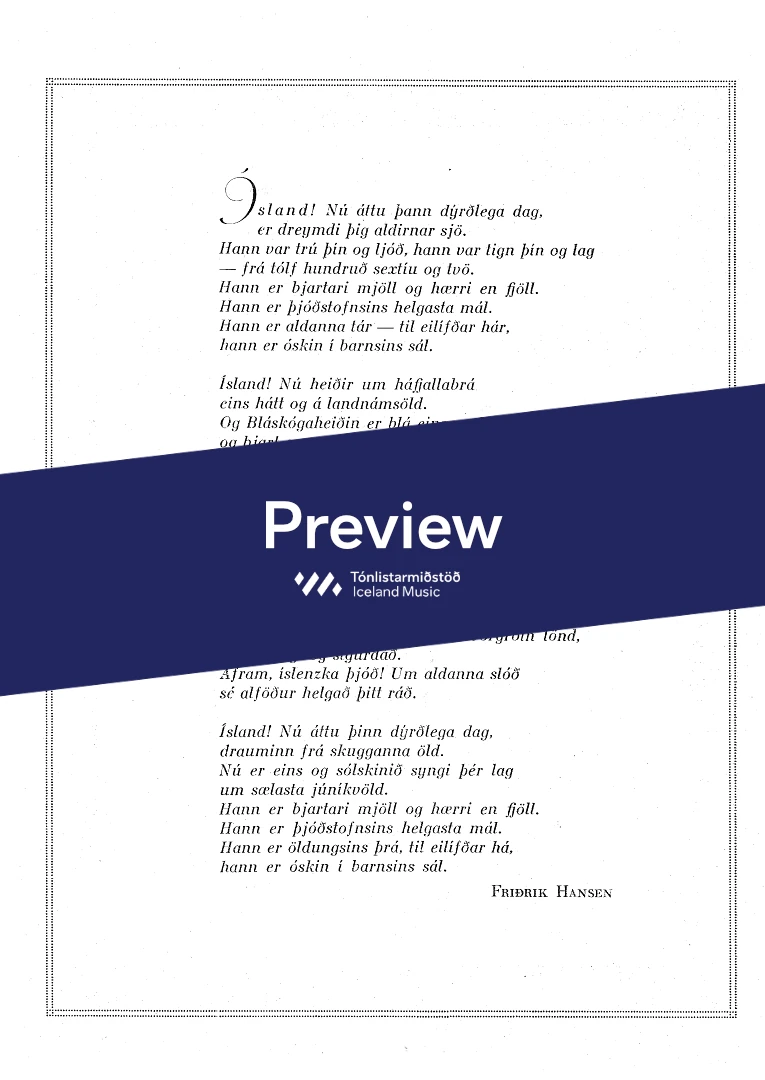 Text sampleÍsland! Nú áttu þann dýrðlegan dag