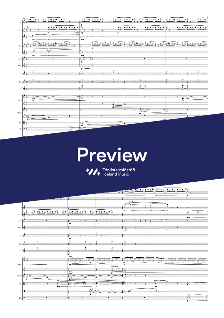 Composed as part of the project "Yrkja" a cooperation between the Iceland Music Information Centre and the Iceland S.O. for emerging composers. First performed 27 January, 2016, conducted by the project's mentor, Daníel Bjarnason.