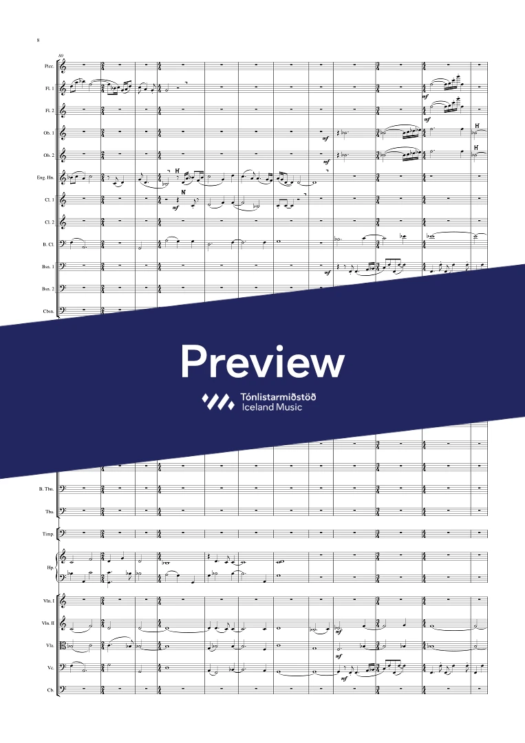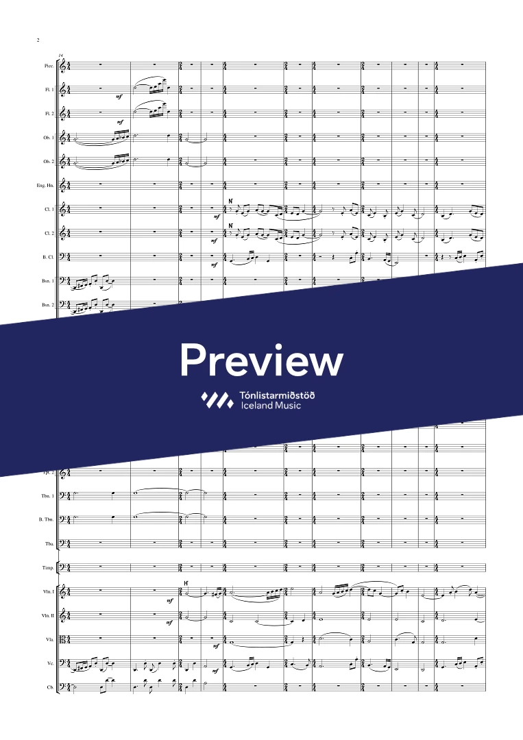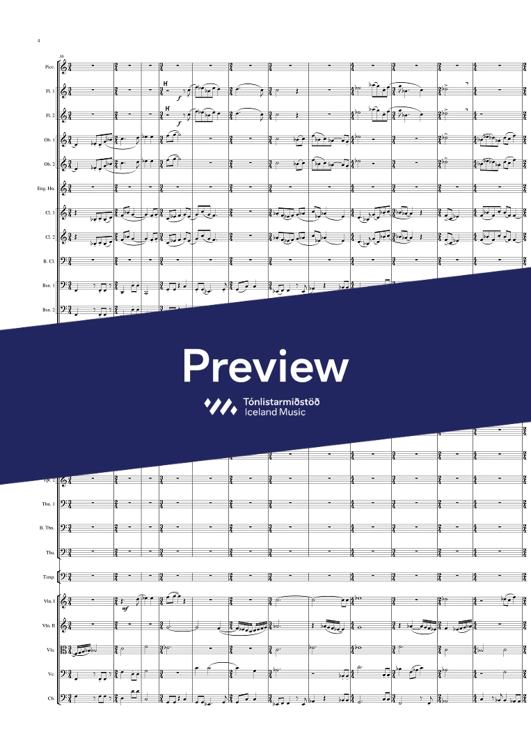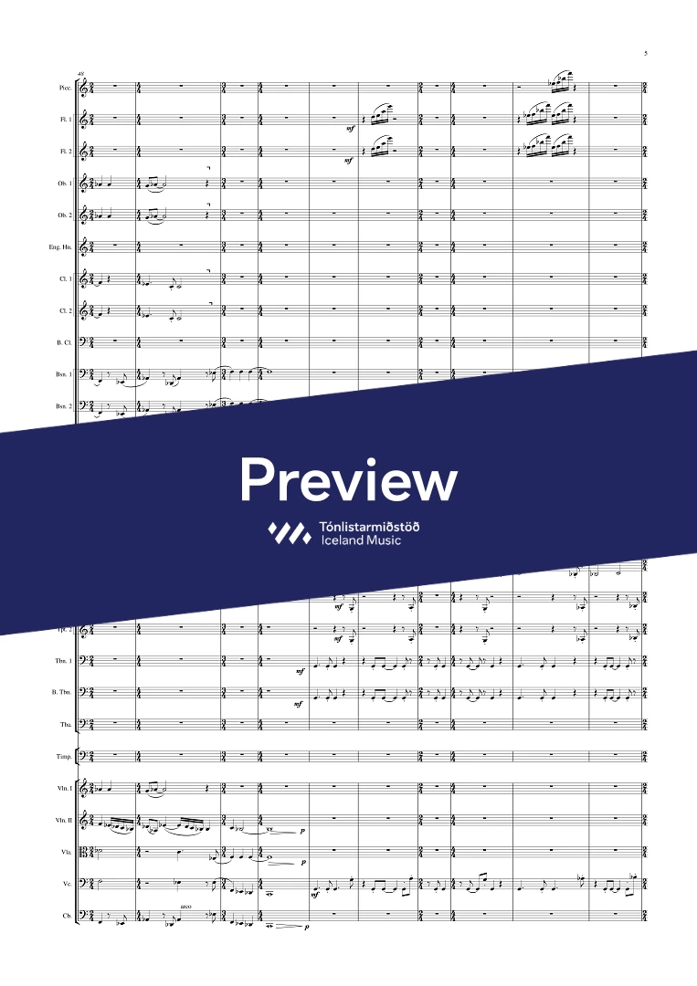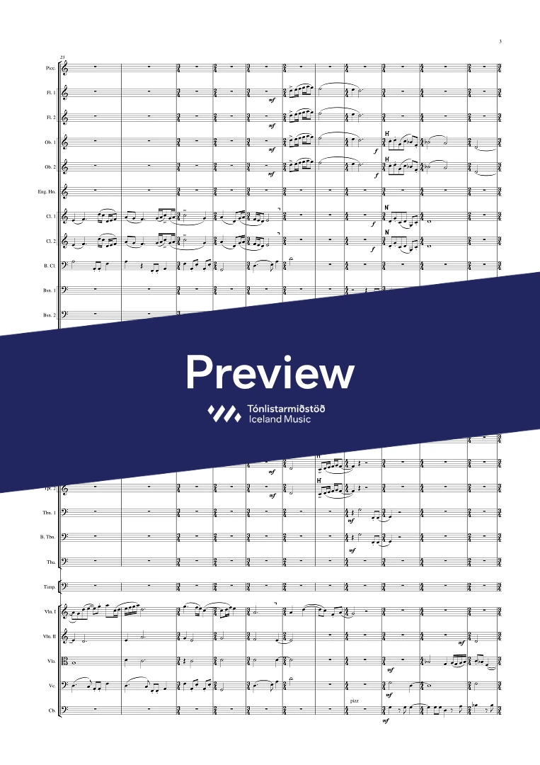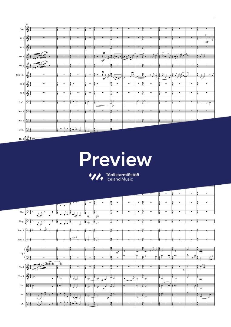 Instrumentation 3(picc.),3(c.angl.),3(bcl.),3(c.fag.) - 4,2,2,1 - hp. - tmp. - perc.(2) - str.