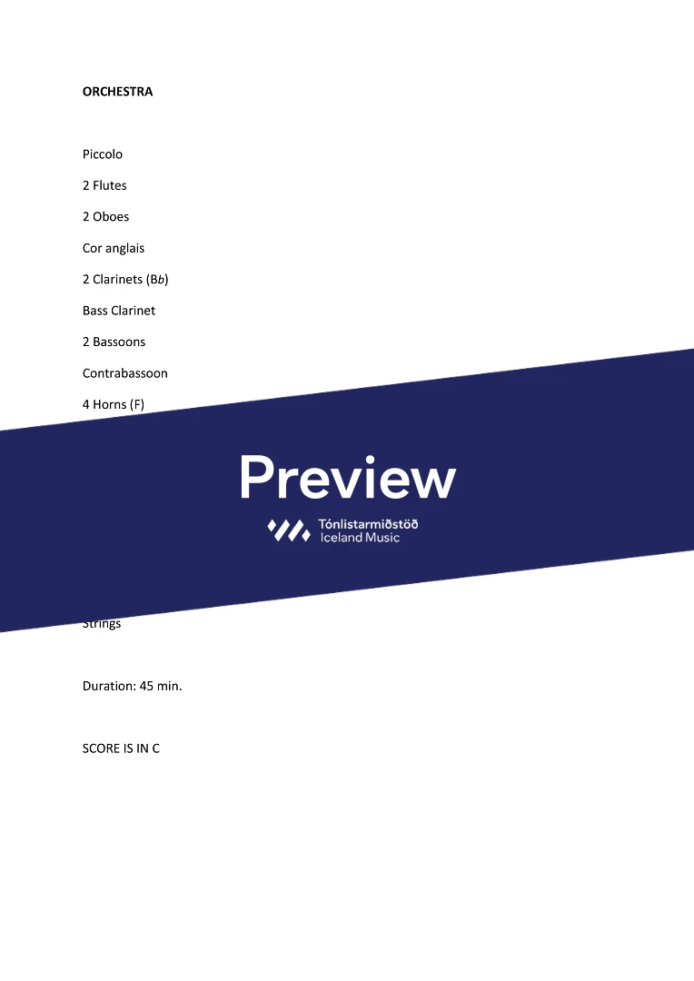 Instrumentation 3(picc.)3(c-ang.)3(bcl.)3(cbn.) - 4,3,3,1 - tmp. - perc.(1) - str.