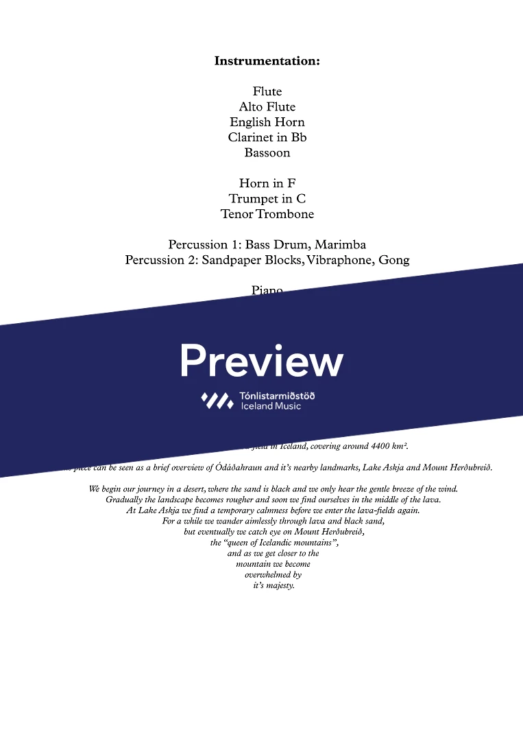 InstrumentationFlute, Alto Flute, English horn, Clarinets, Bassoon, French Horn, Trumpets, Trombone, Percussion, Piano, Violin, Viola