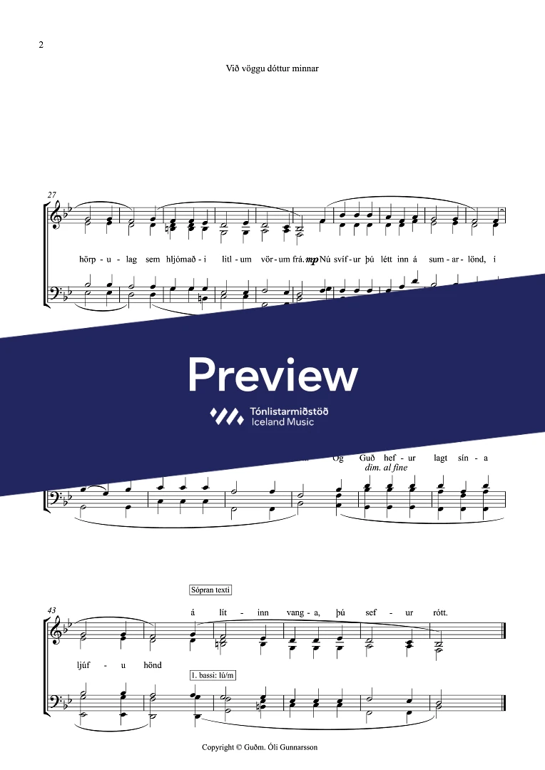 Text sampleNú færist logn yfir ljósa brá