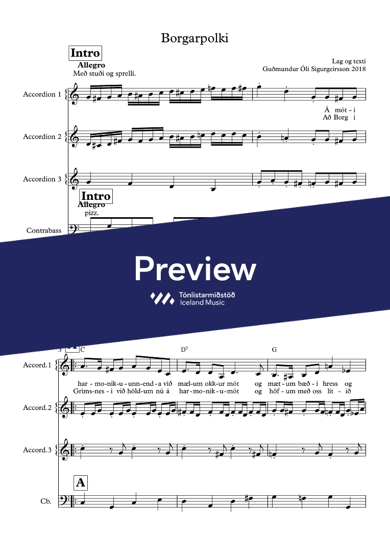 Instrumentation 3 Accordions (ad lib. vocals) & Bass
