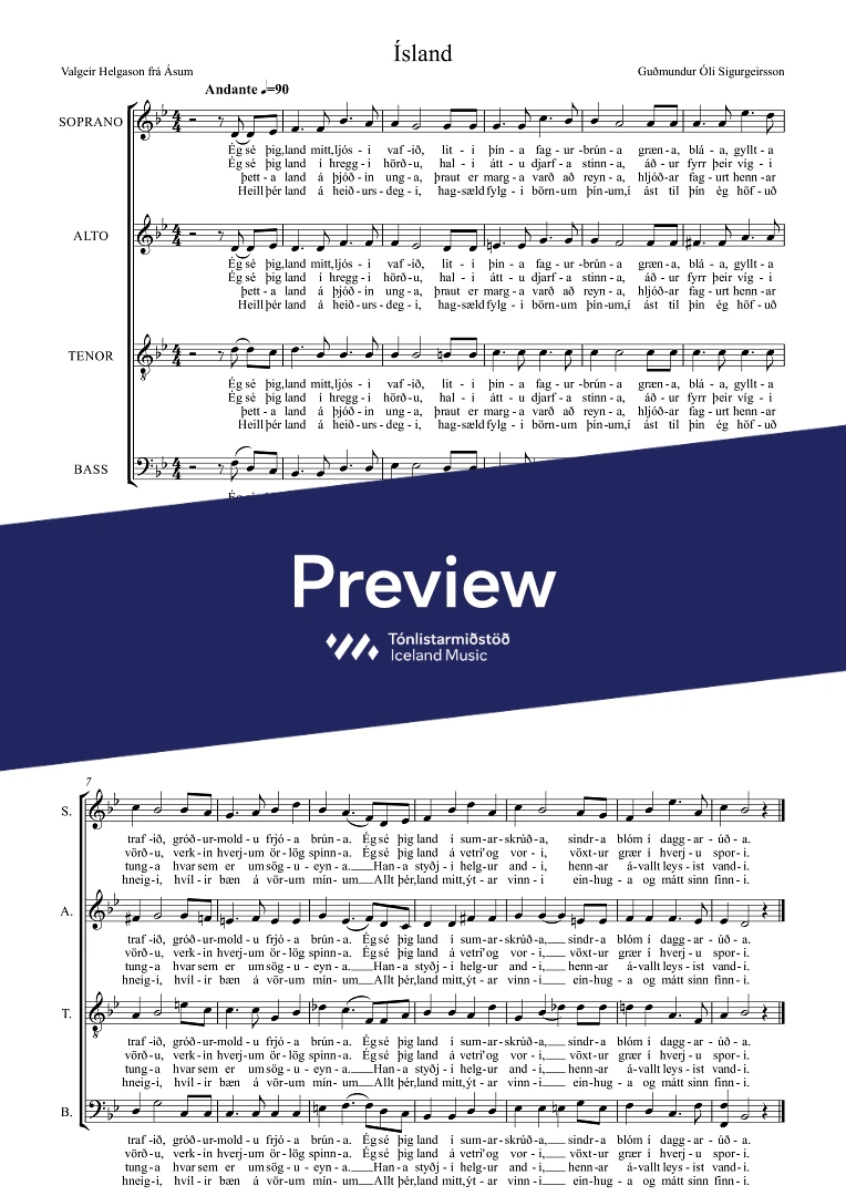 Text sampleÉg sé landið mitt, ljósi vafið