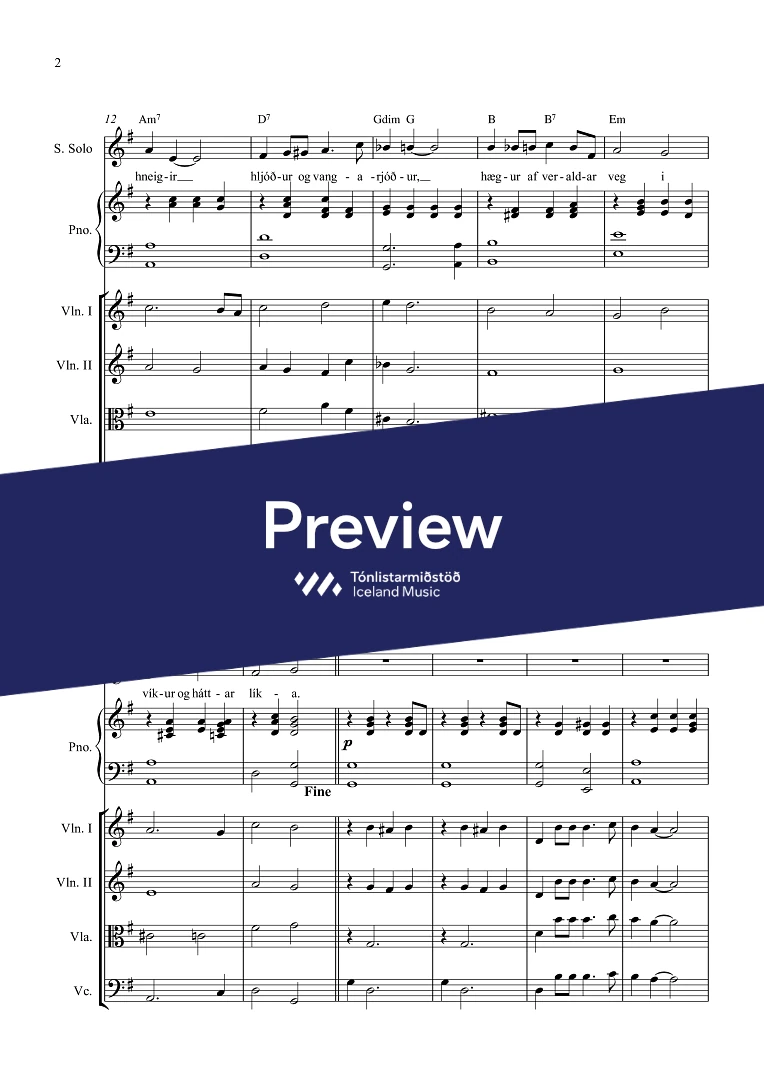 Instrumentation soprano, piano, 2 violins, viola, violoncello