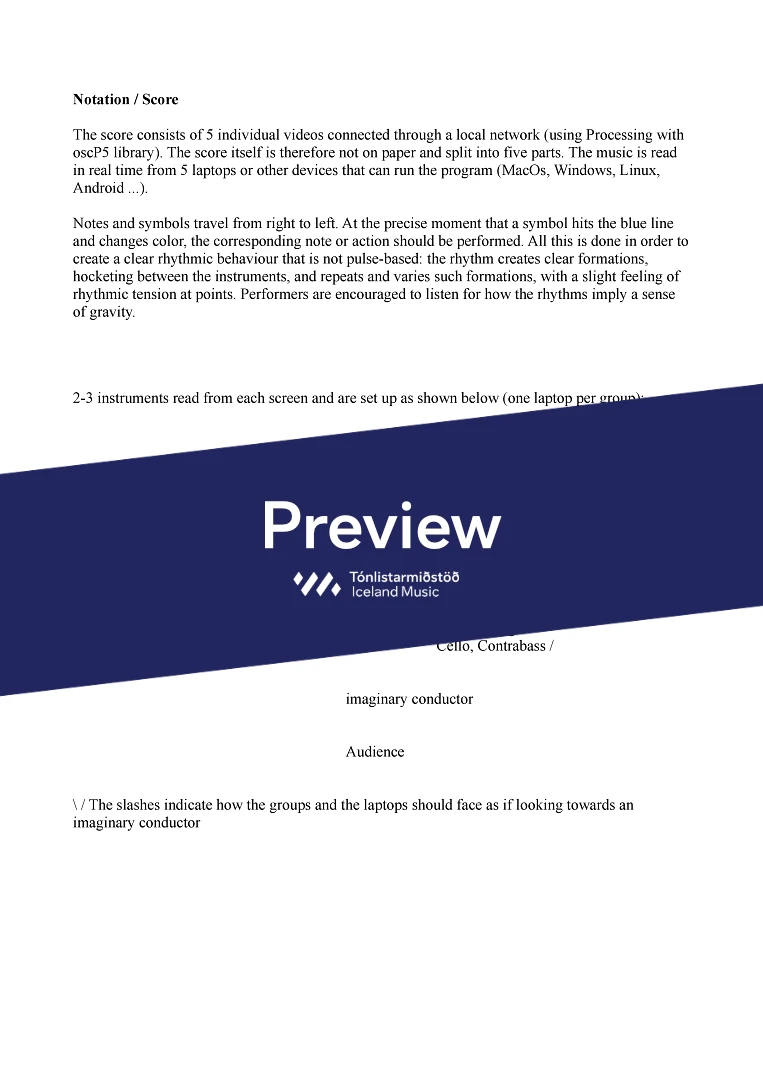 Premiere29 January 2012 - Kammersveit Reykjavíkur at Norðurljós, Harpa as part of the Dark Music Days festival.