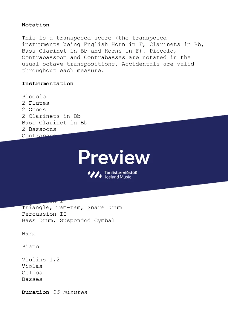 Price for score only. For rental of performance materials, please contact itm@mic.is