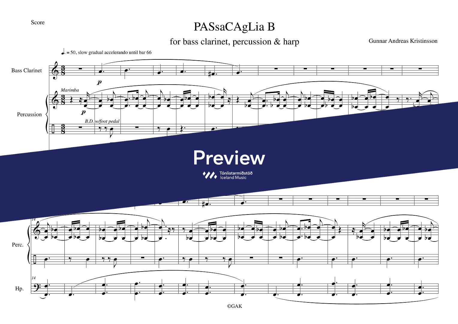 InstrumentationBass Clarinet, Percussion, Harp