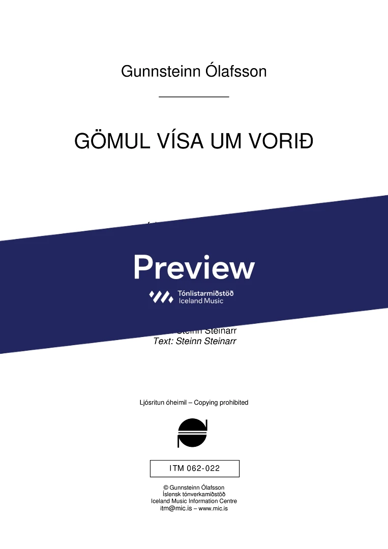Icelandic folk song - Íslenskt þjóðlag, Guðmundur Gíslason Hagalín, Gunnsteinn Ólafsson