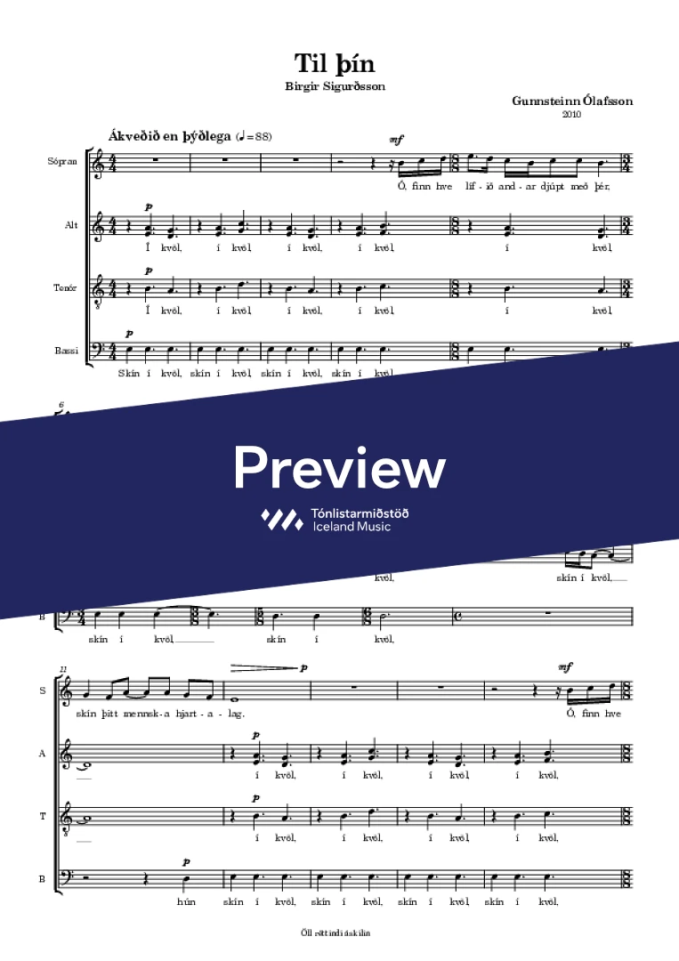 Icelandic folk song - Íslenskt þjóðlag, Guðmundur Gíslason Hagalín, Gunnsteinn Ólafsson