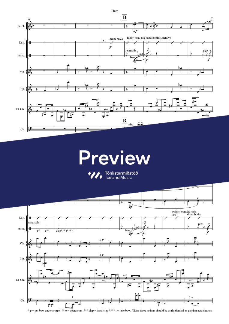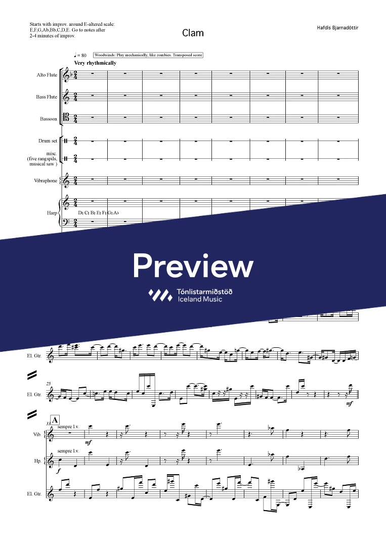 InstrumentationAlto Flute, Bass Flute, Bassoon, Percussion, Vibraphone, Harp, Electric guitar, Double Bass, Langspil