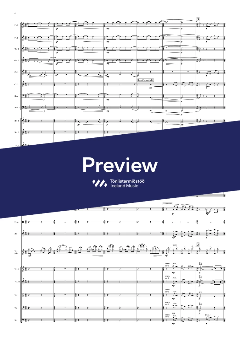 2(picc./alt.fl.),2(cor-ang.),2(b-cl.)2,(C-fag.),- 2, 2, 2, 1, - tmp. - perc.(1), - hp. - str.