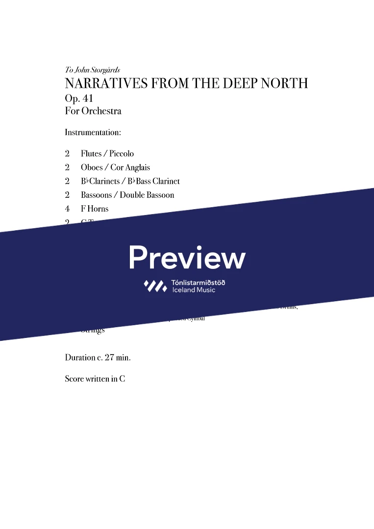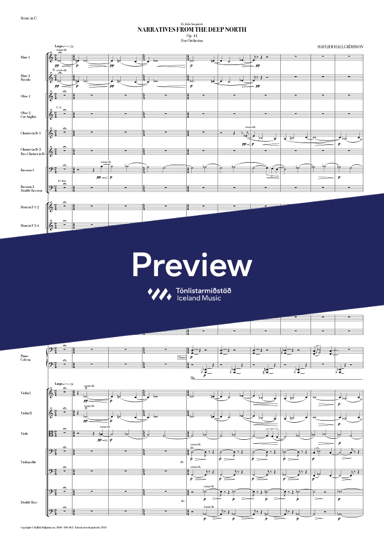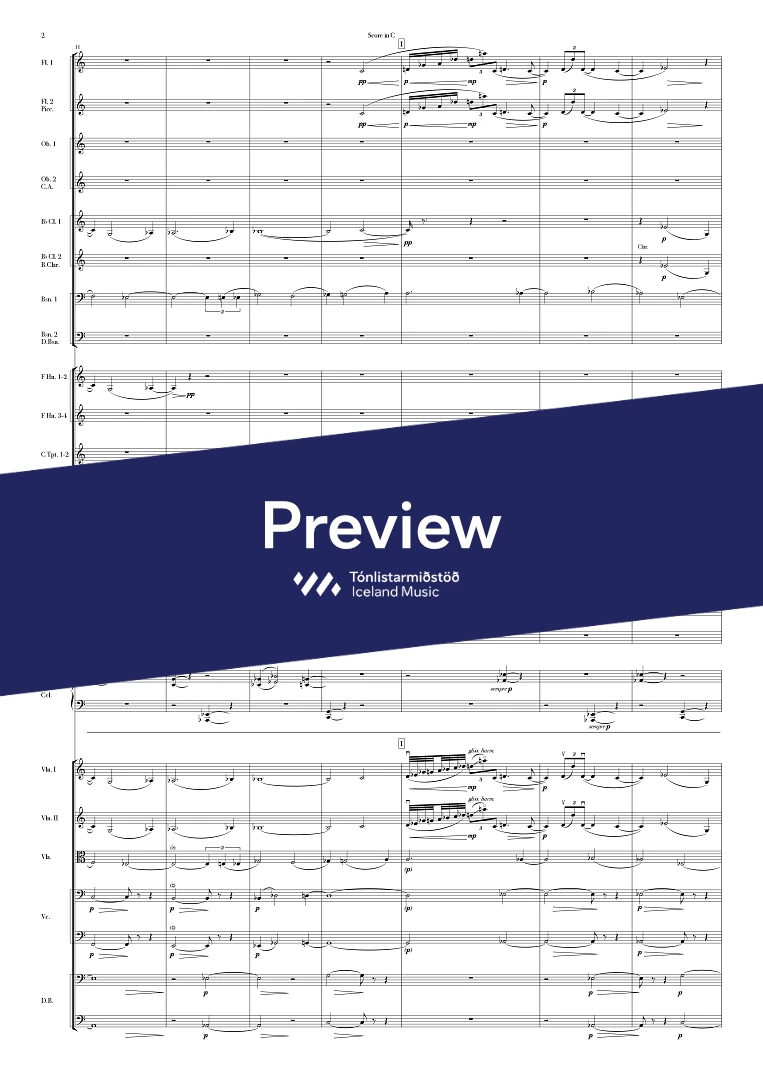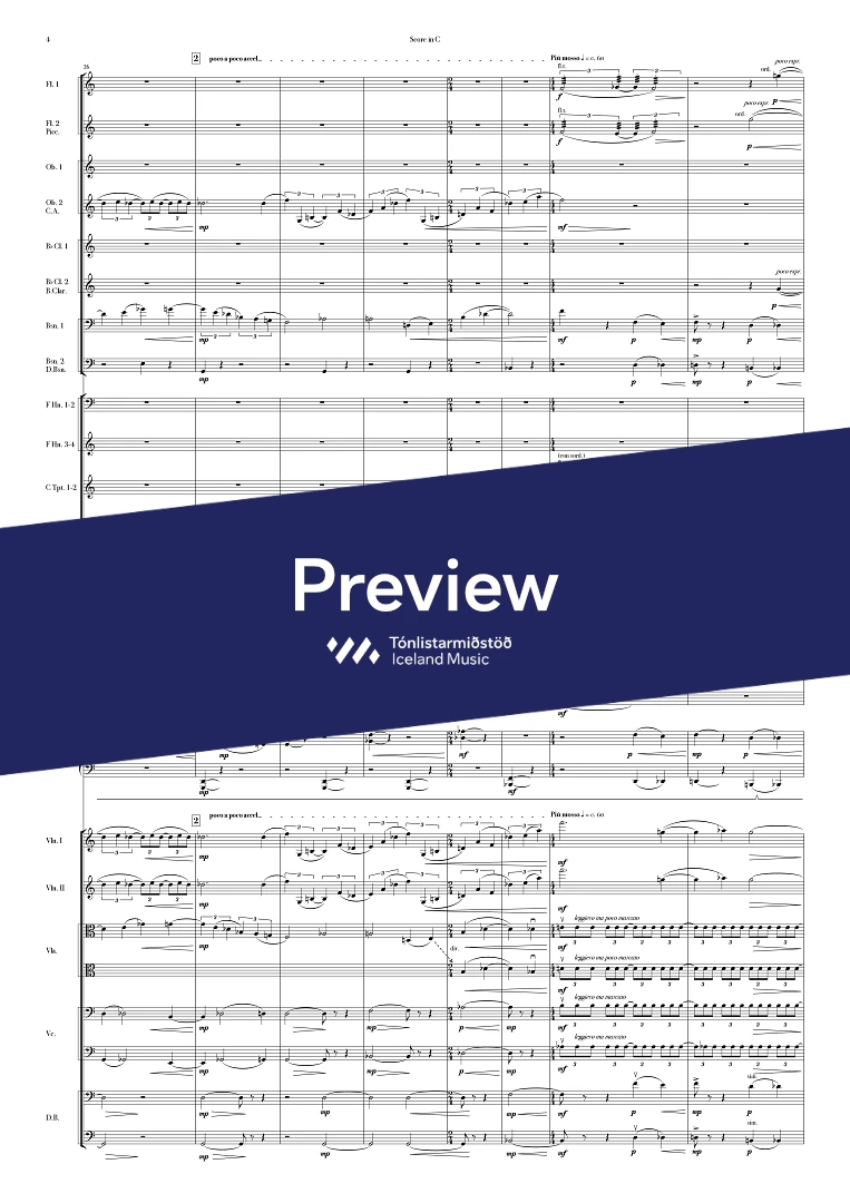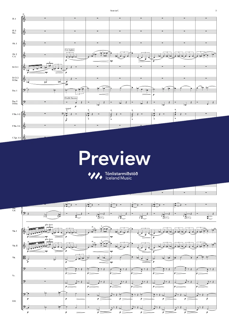 Instrumentation 2,.2.(cor.ang.)2,.2.(Cfag,).- 4,4,4,1, - tmp. perc. - pno./cel. - str.