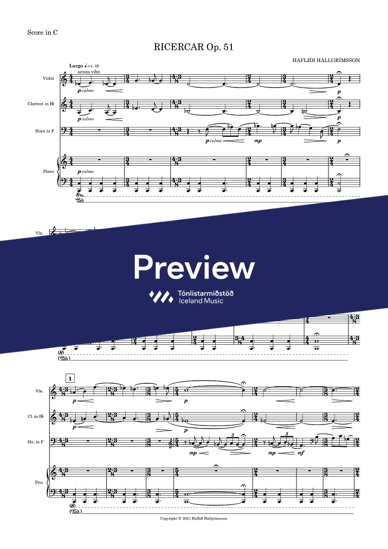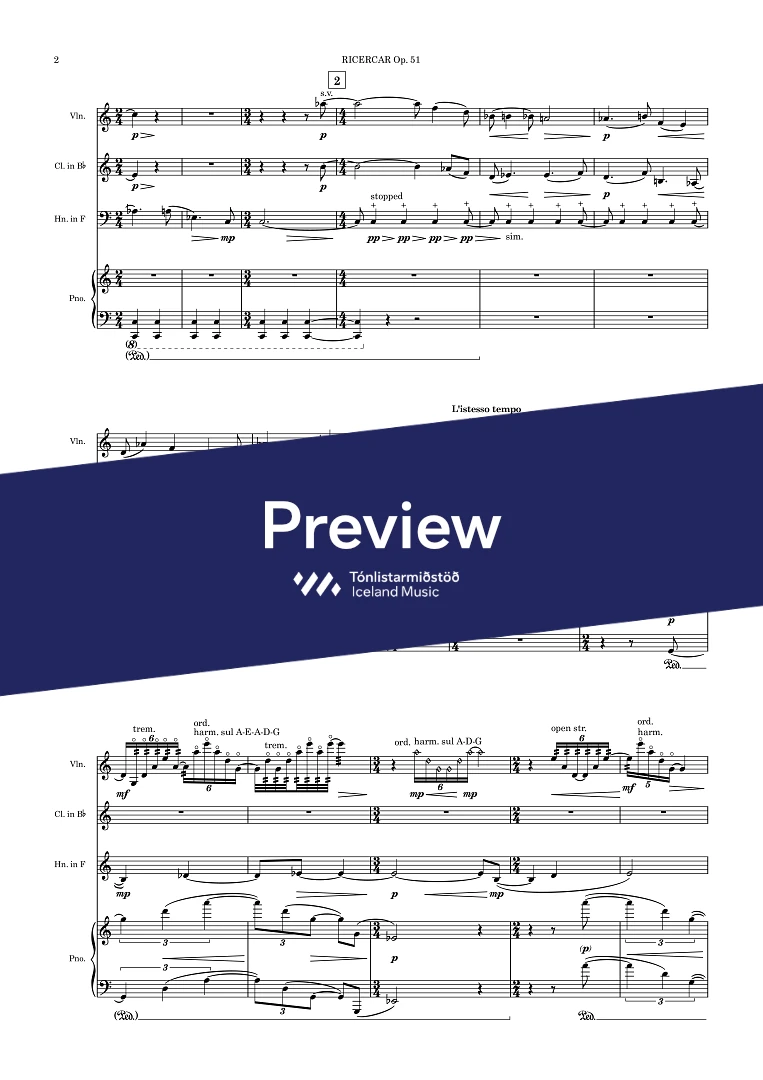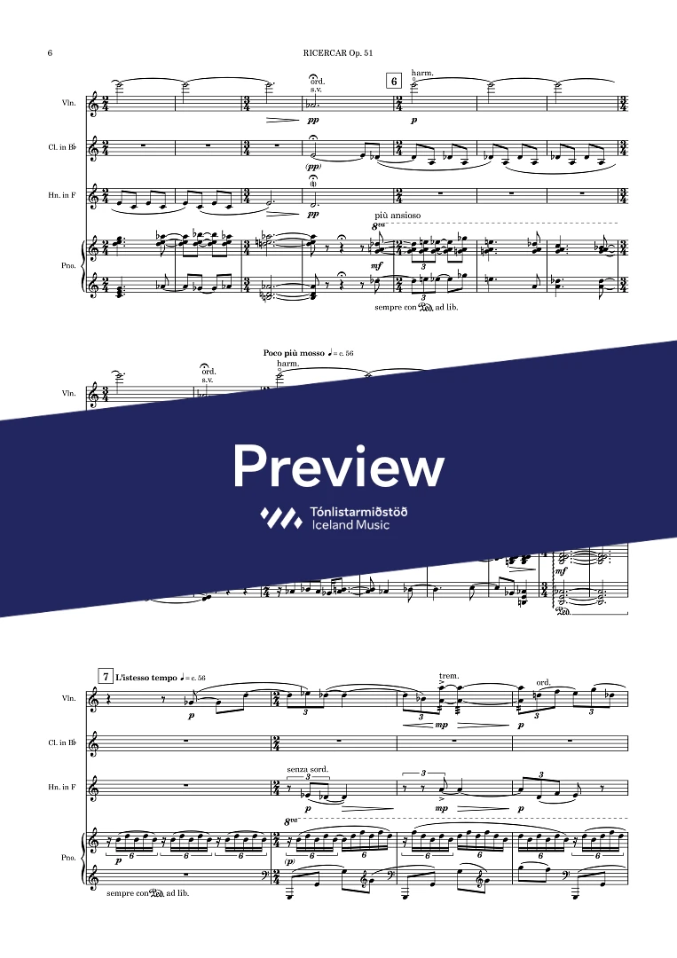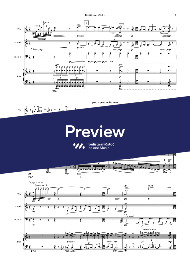 InstrumentationClarinet in Bb, French Horn, Piano, Violin