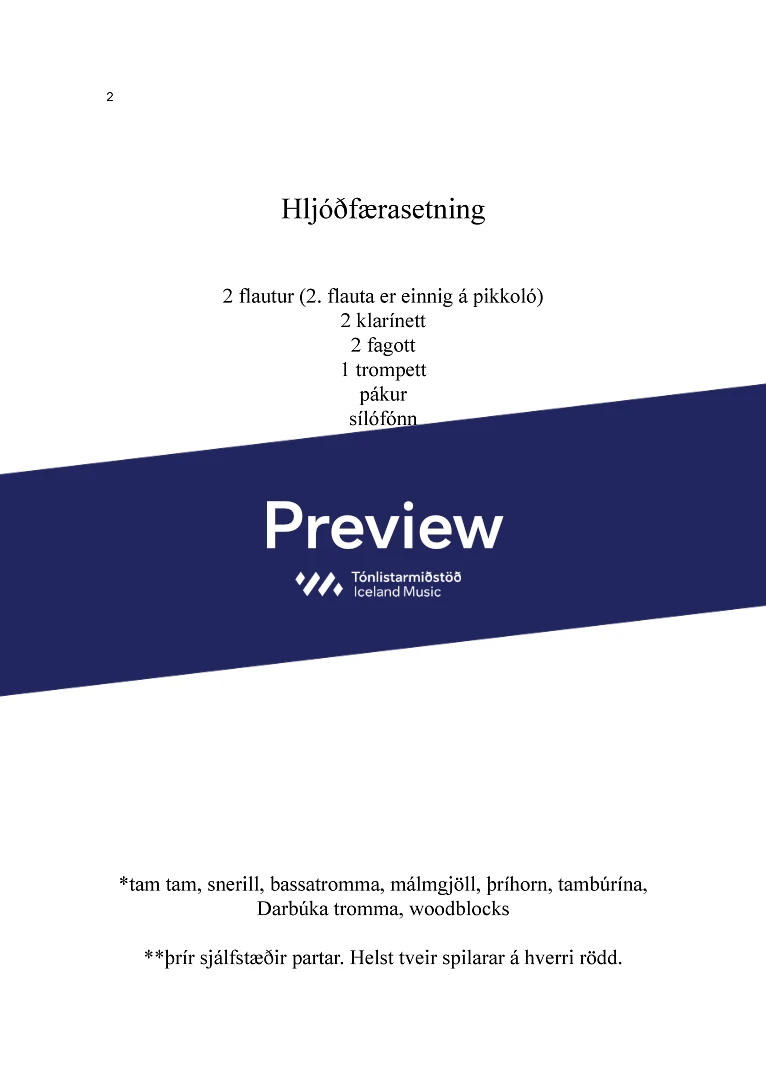 Instrumentation 2(picc.) 0,2,2 - 0,1,0,0, - tmp. - perc. -hpschd. - str.