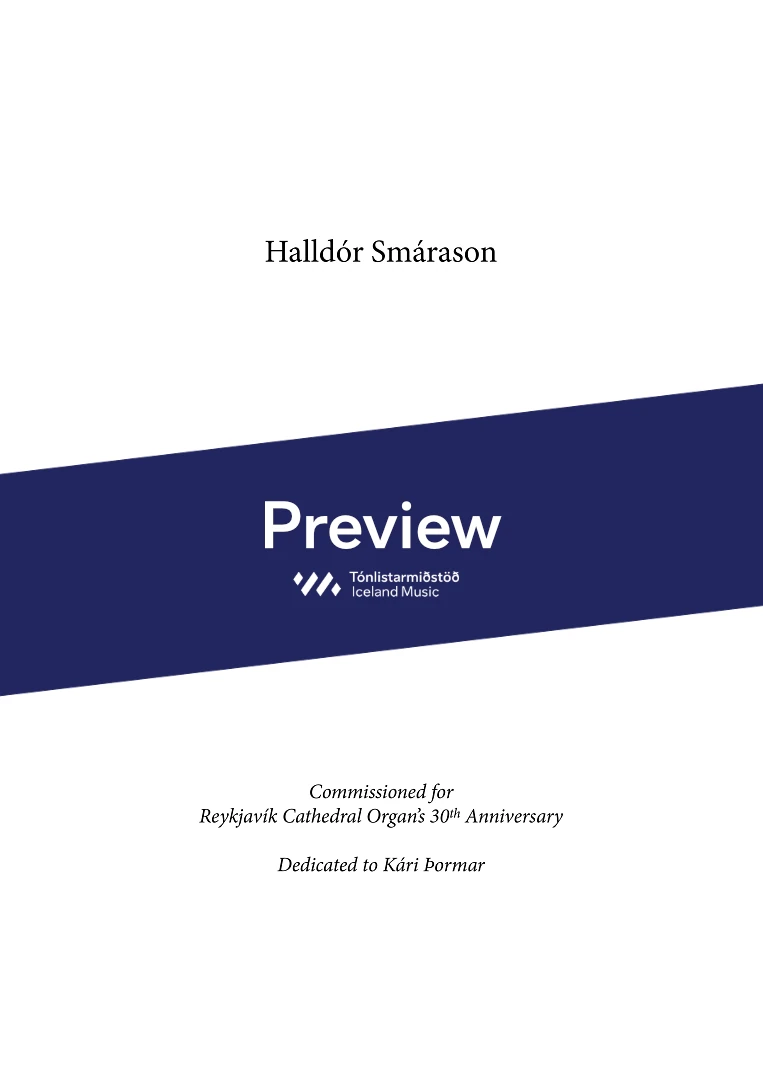 Commissioned for the 30th anniversay of the organ at Reykjavík Cathedral and dedicated to the Cathedral organist, Kári Þormar. First performed there on 9 November, 2016.
