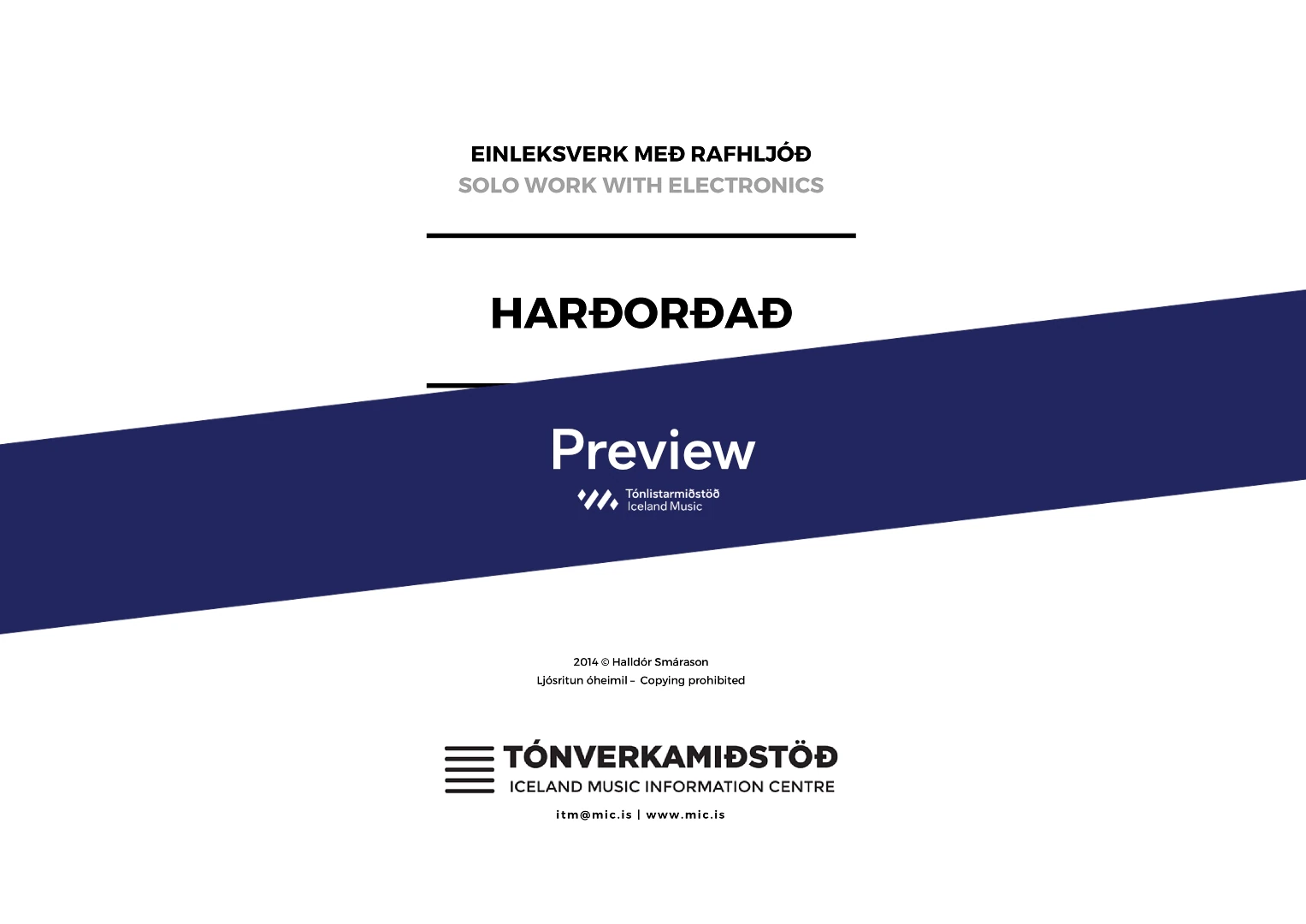 The instrument is either with a pickup or amplified with microphones. The electronics are controlled by the player and for this is required a computer, Max 6 software (patch provided by the composer), Midi foot pedal, Stereo speakers, appropriate cables. (Note: minimum two condenser microphones if the viola d'amore does not have a pickup). Price is for score only. Fo electronics contact itm@mic.is