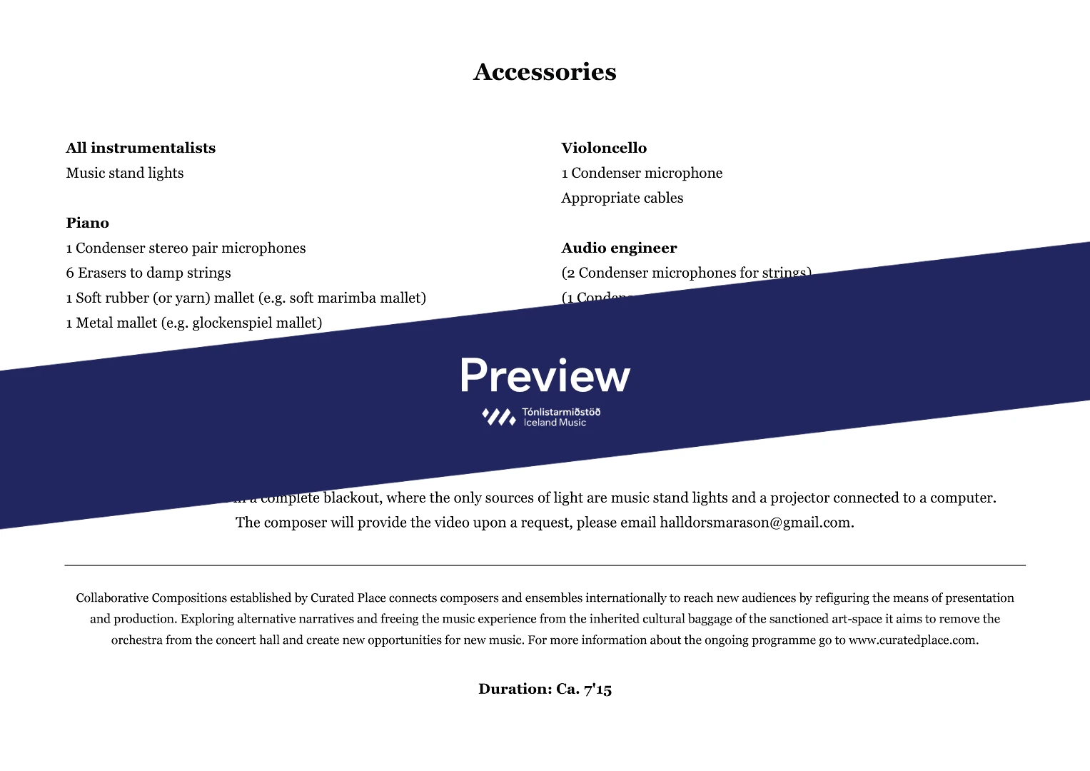 Price is for score only. For parts and movie audio, contact itm@mic.is