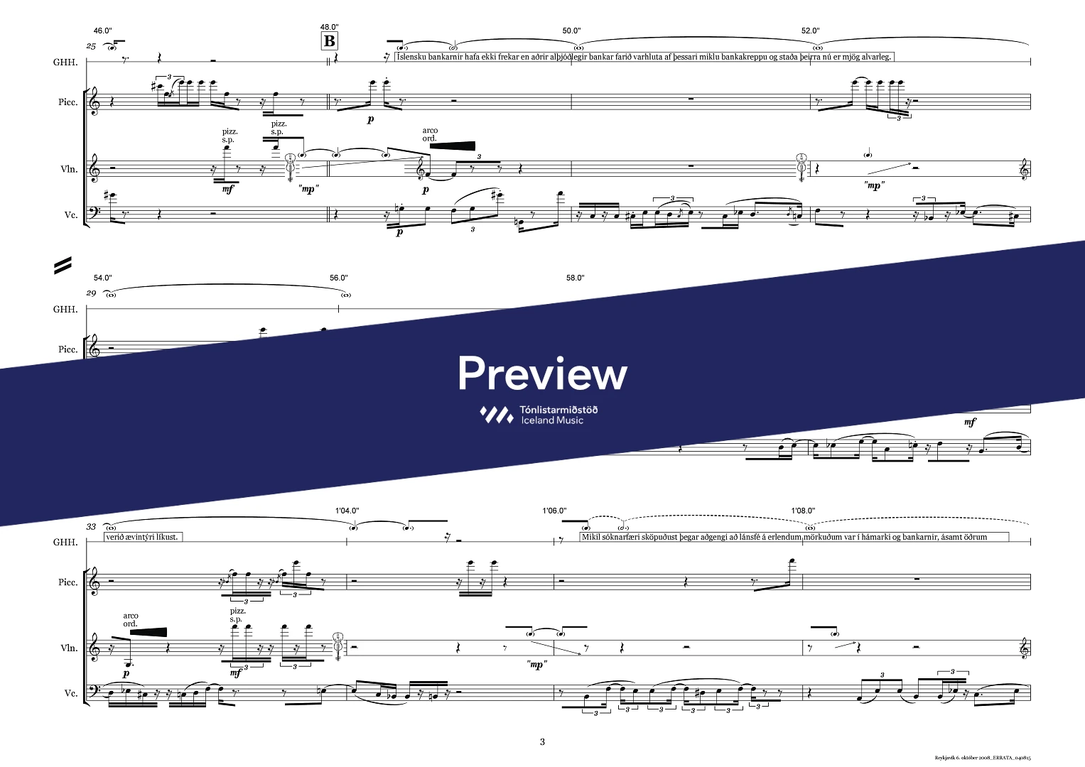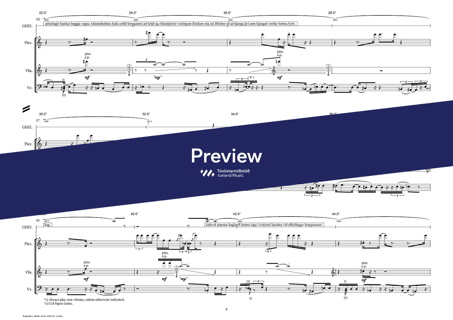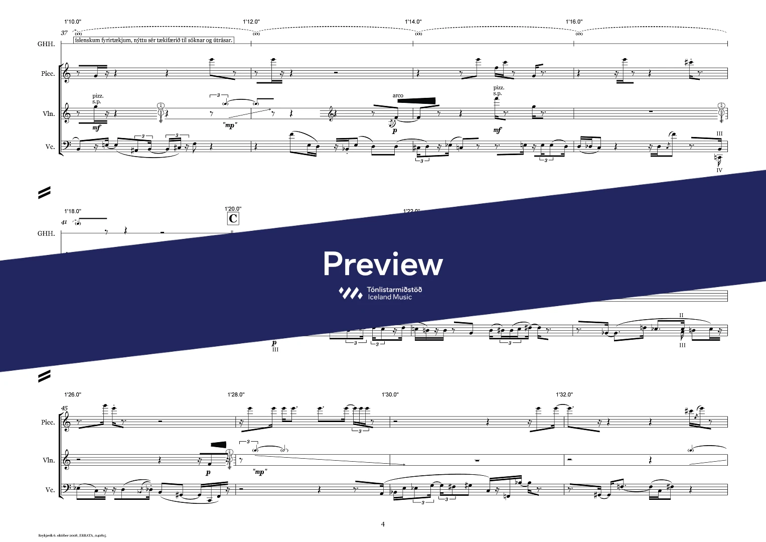 Instrumentation amplified flute, amplified, violin, amplified cello & video