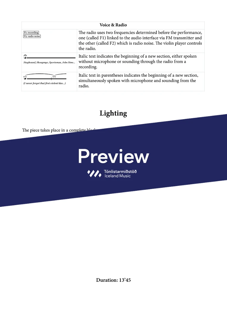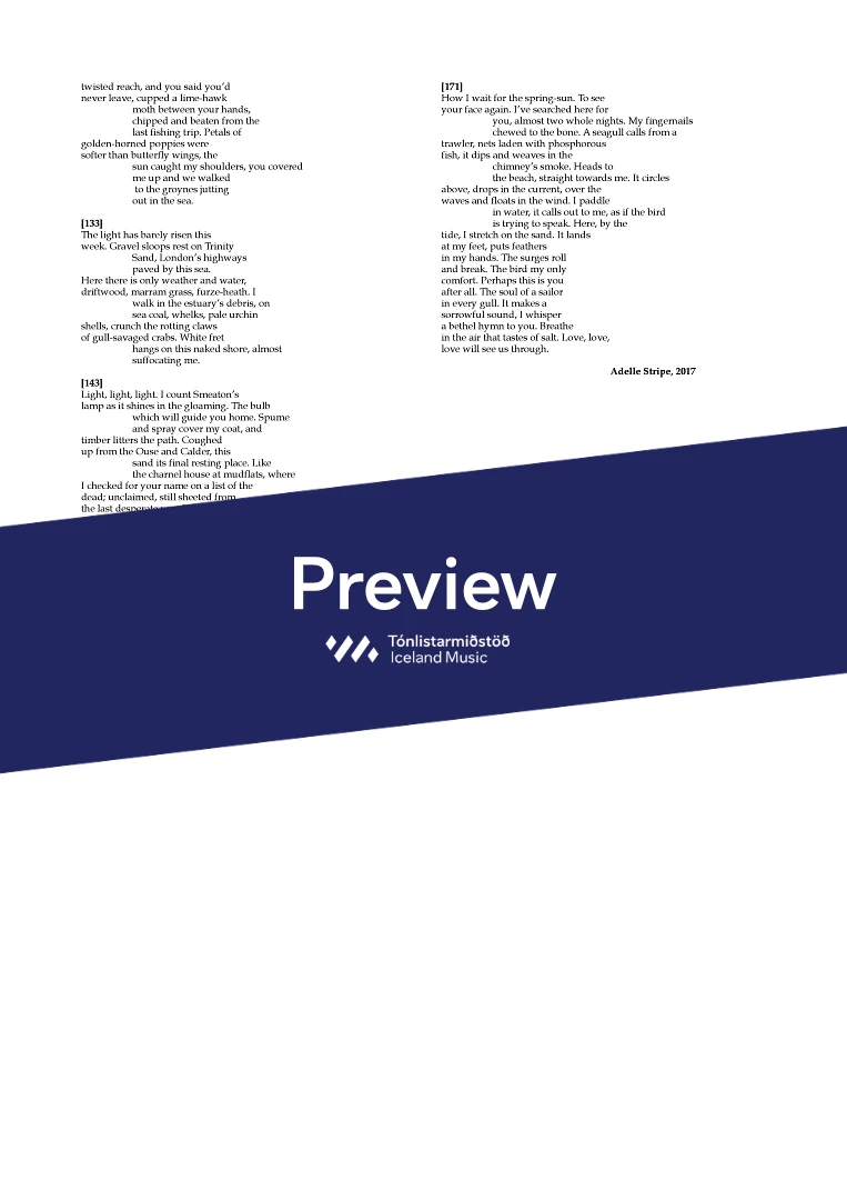 Price for score only. To purchase parts, contact shop@icelandmusic.is For the electronic parts, contact the composer (details in score)