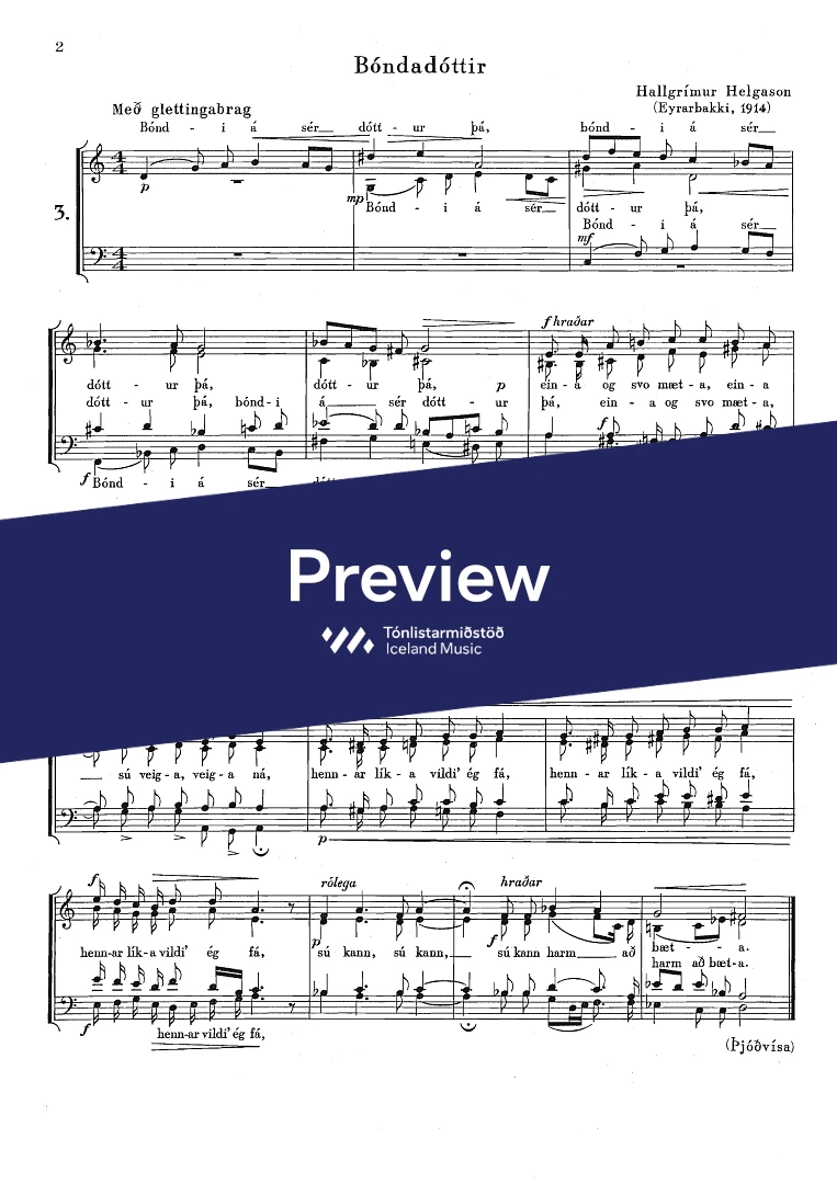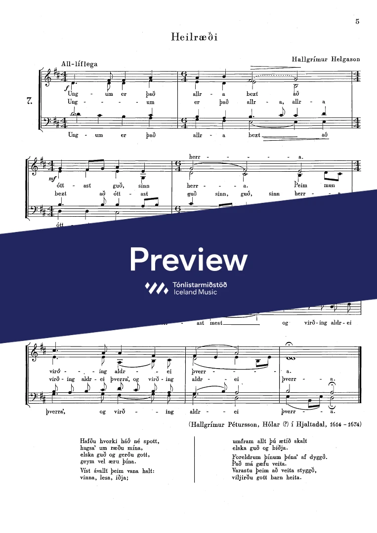 Hallgrímur Helgason, Folk verse - Þjóðvísa