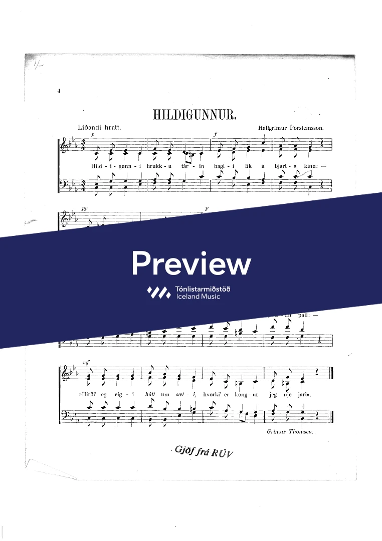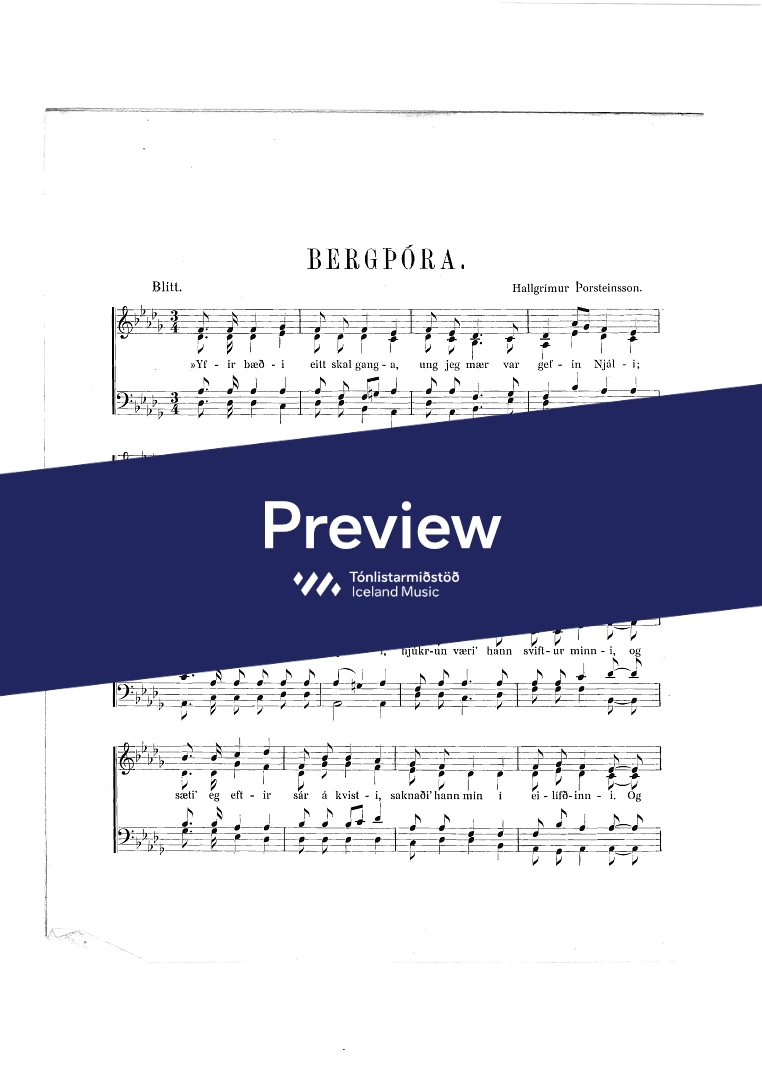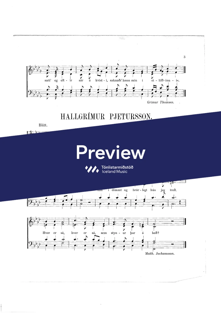 Composer Hallgrímur Þorsteinsson Year composed- Categories Choral music, A cappella choir InstrumentationMixed choir Catalogue no.787-900 ISMN-