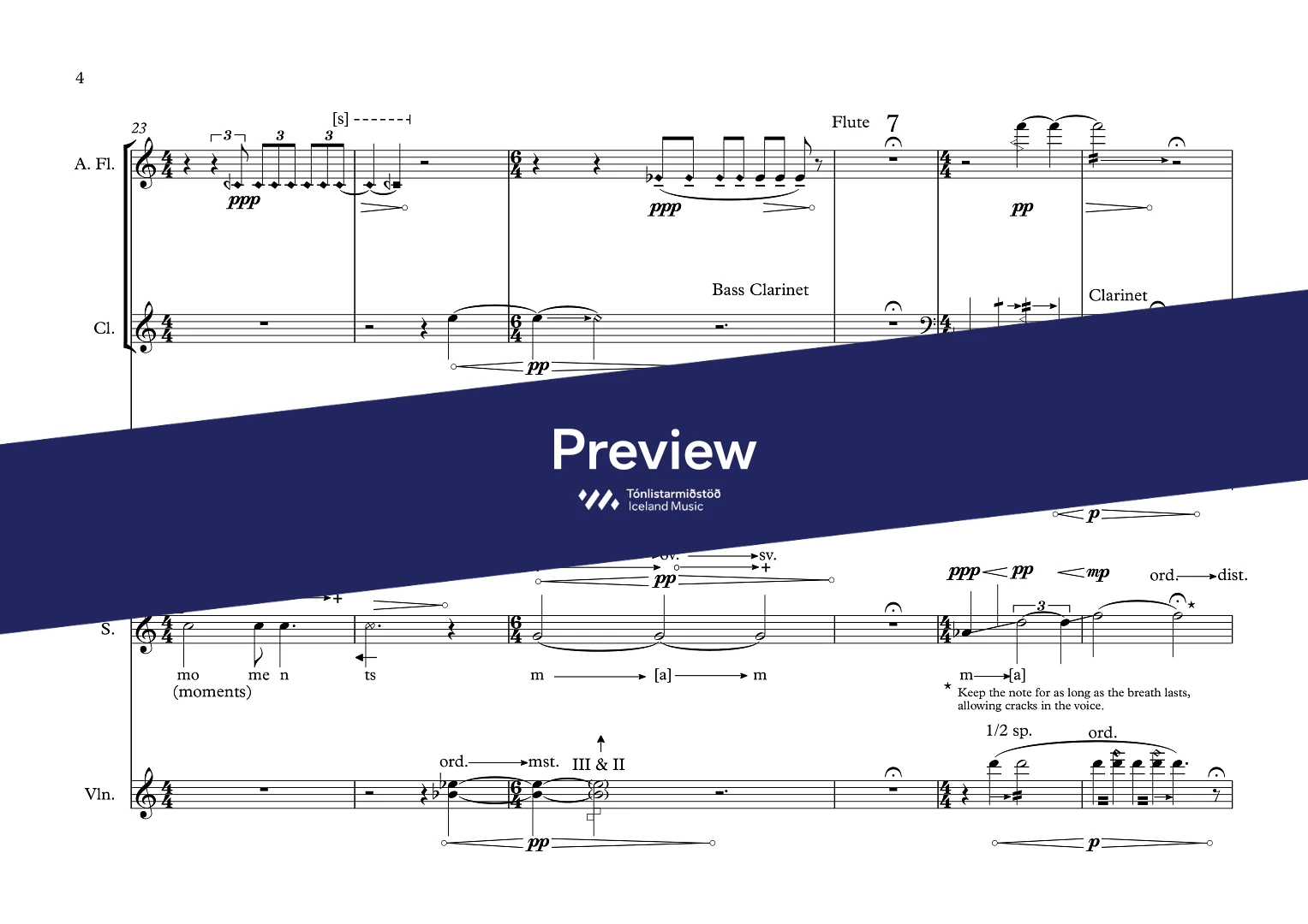 InstrumentationFlute, Alto Flute, Bass Clarinet, Percussion, Soprano, Violin