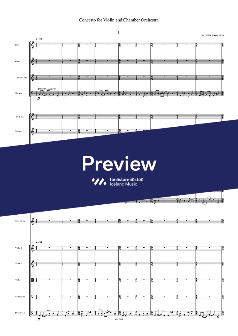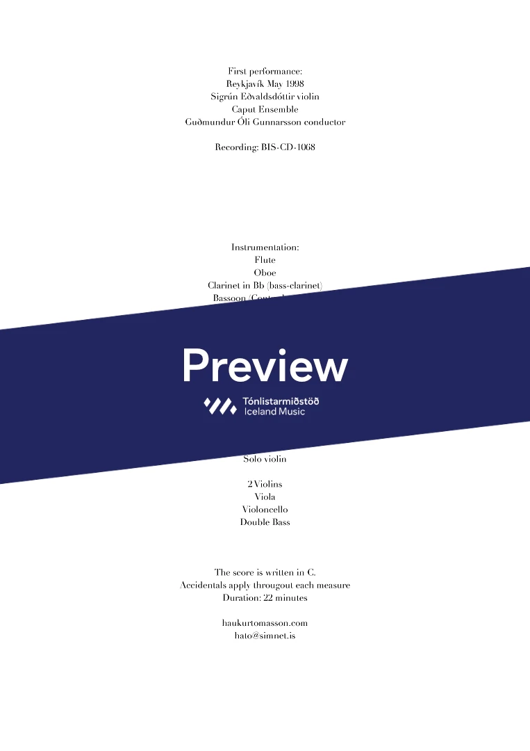 Instrumentation 1,1,1,1(cfag.) - 1,1,1,0 - perc. - synth. - vln. solo - str.