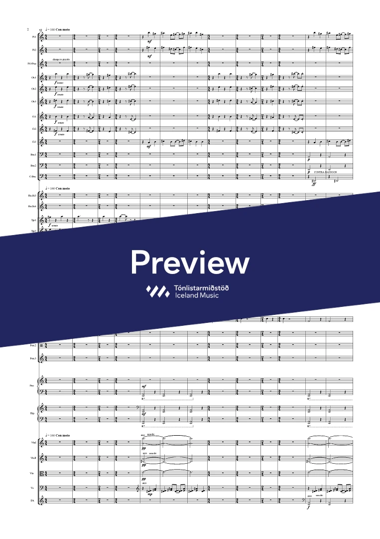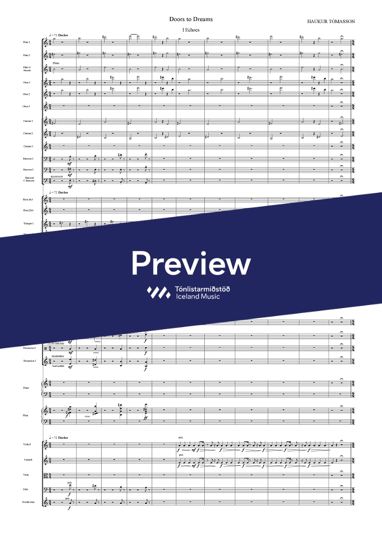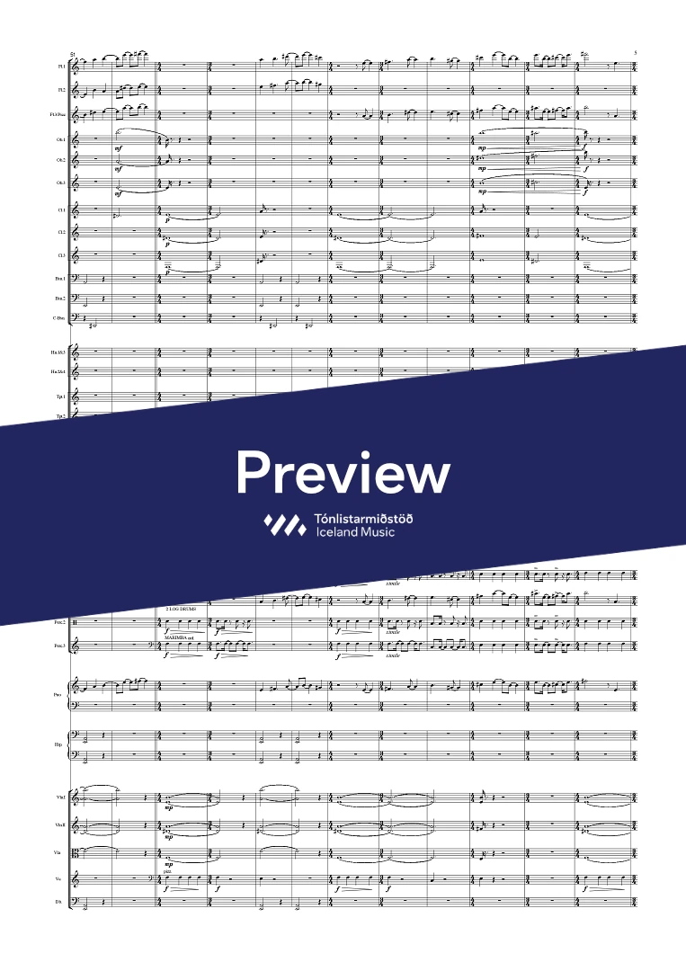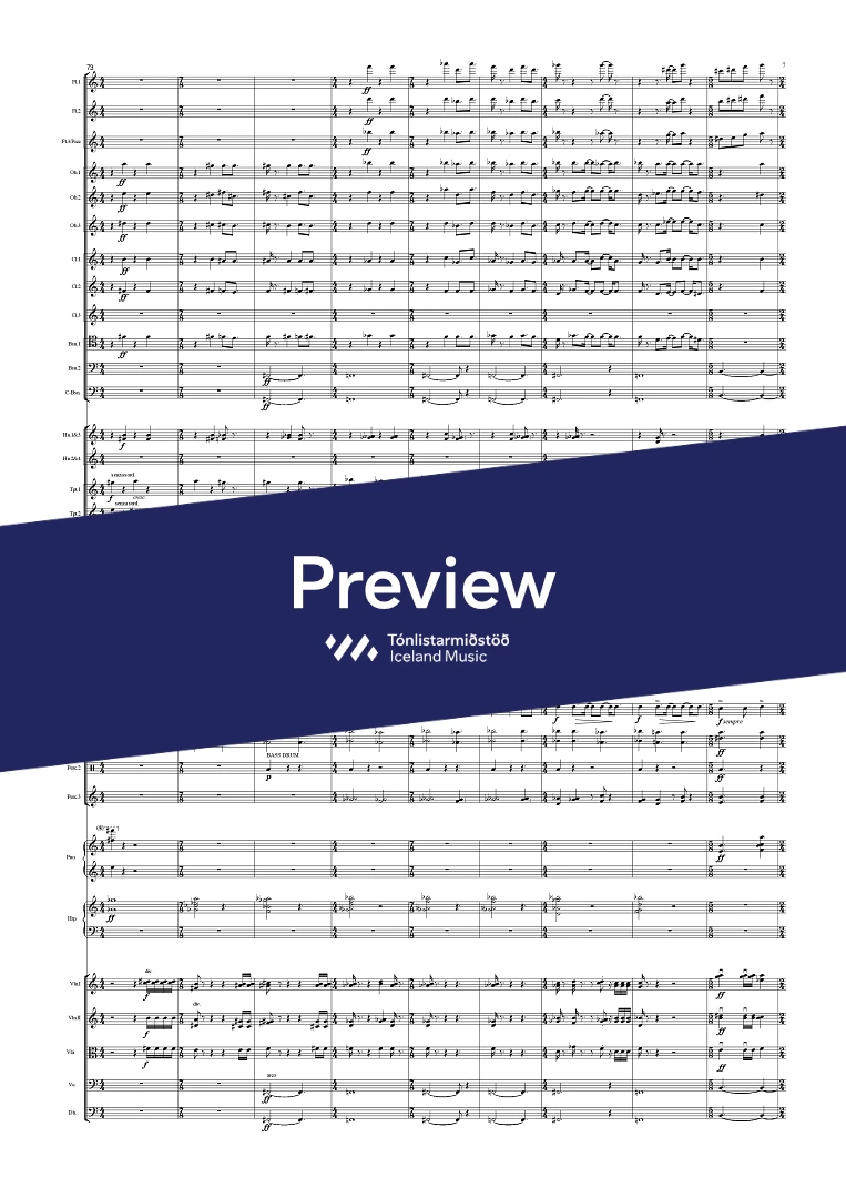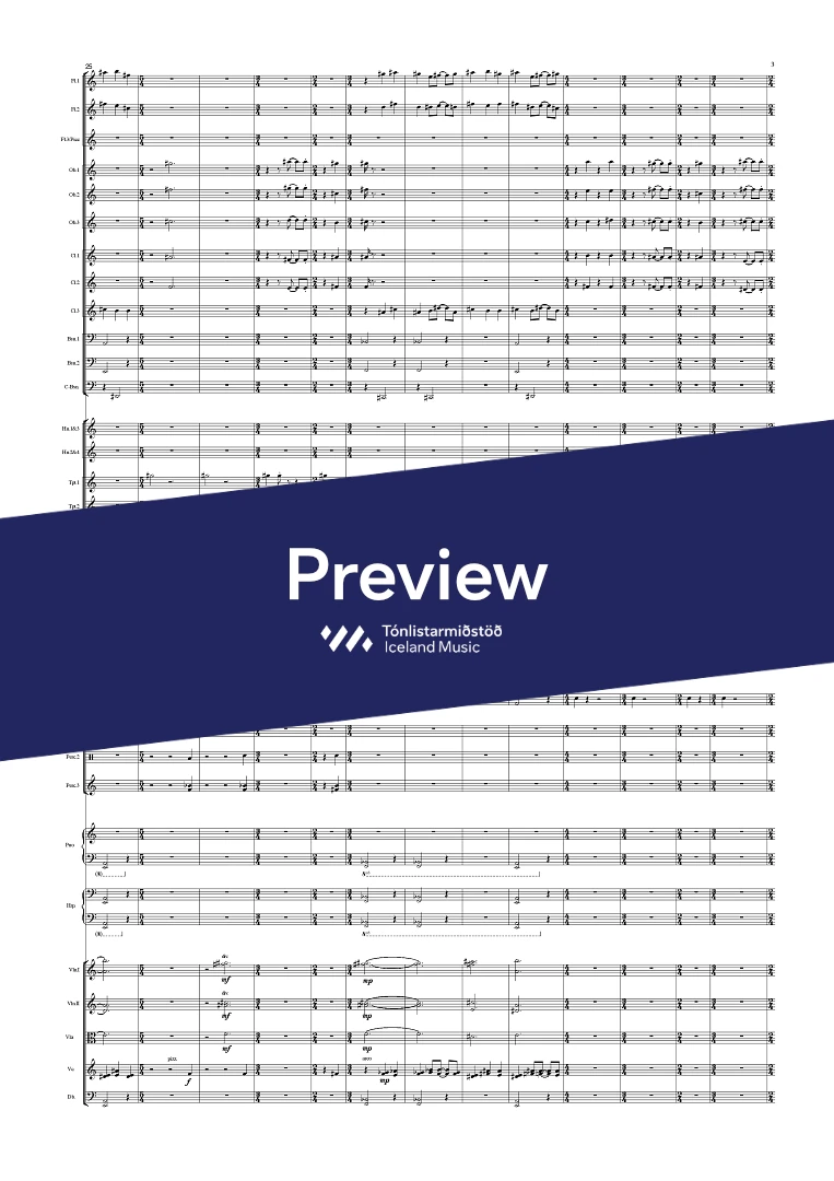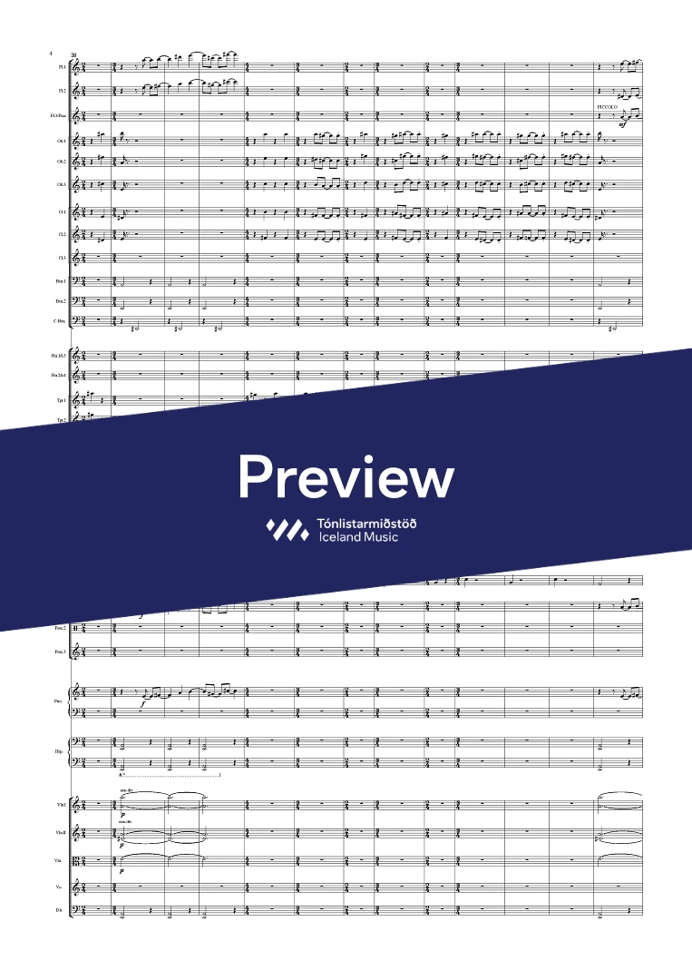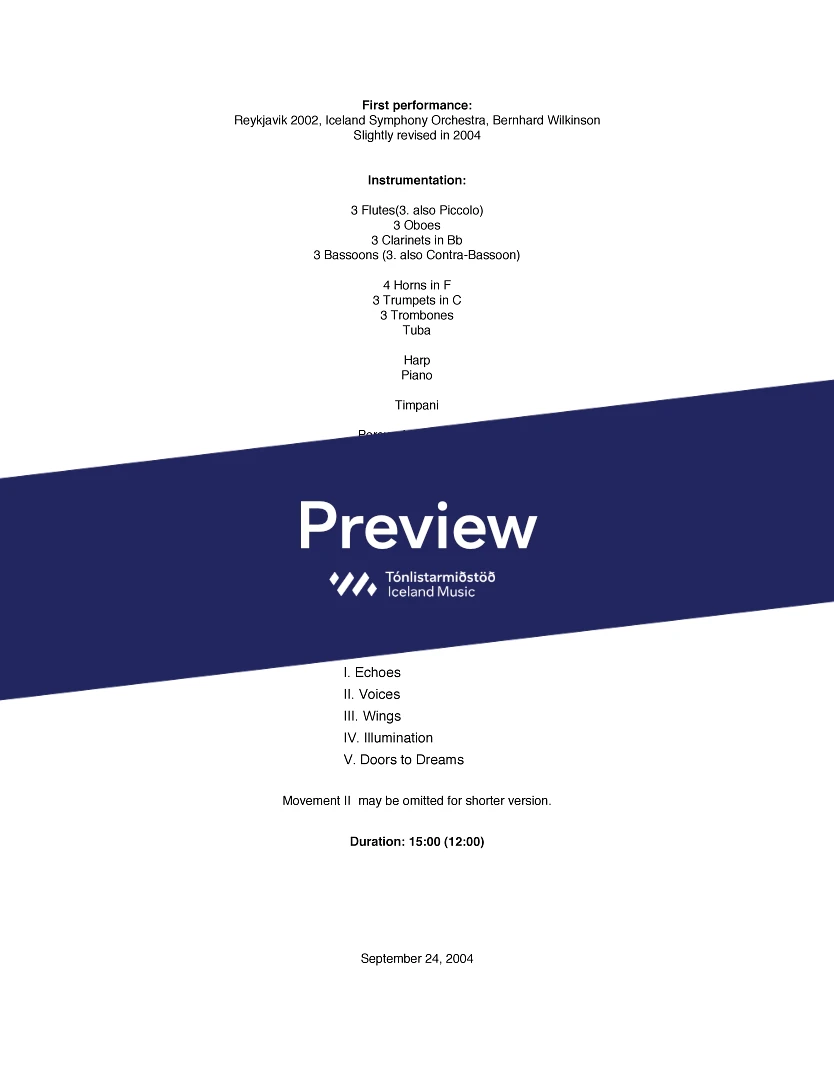 Instrumentation 3(picc).3.3.3(Cbsn).-4.3.3.1;Perc(3), Piano, Harp & Strings