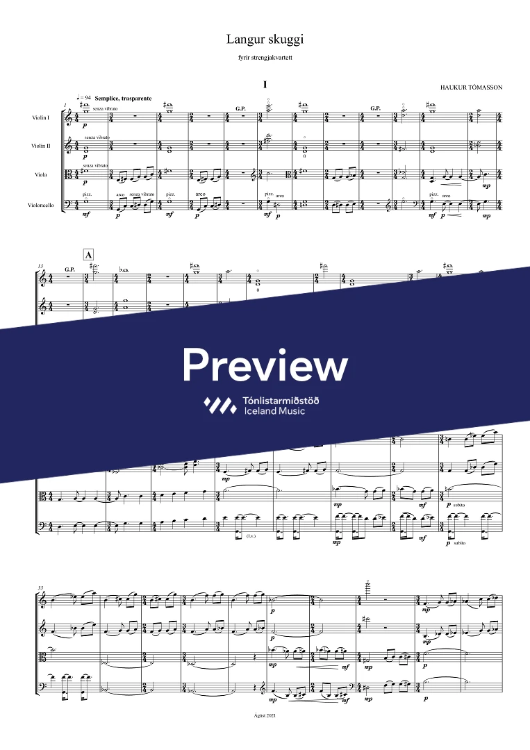 Instrumentation String Quartet: 2 Violins, Viola & Cello