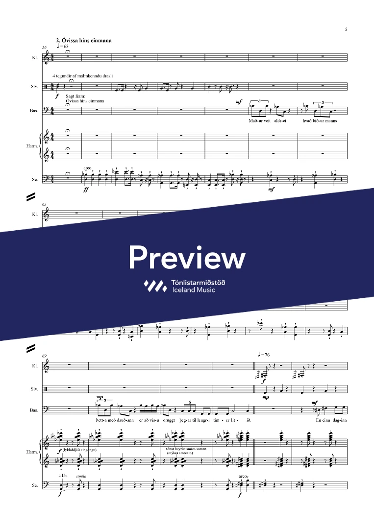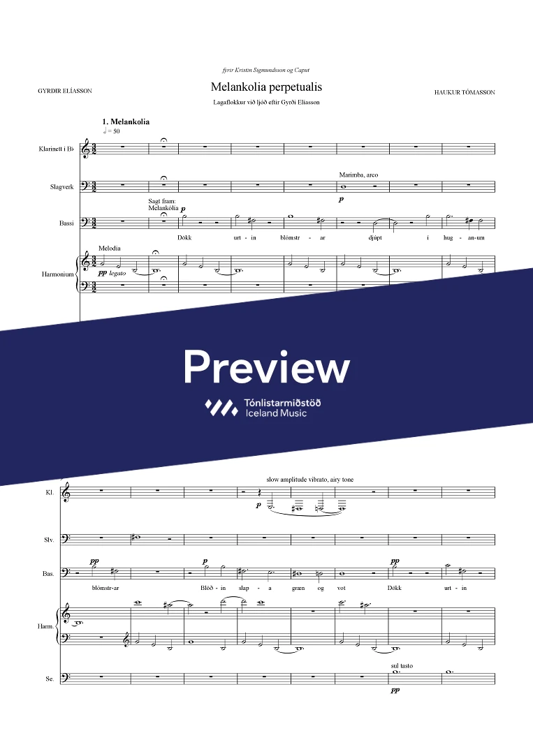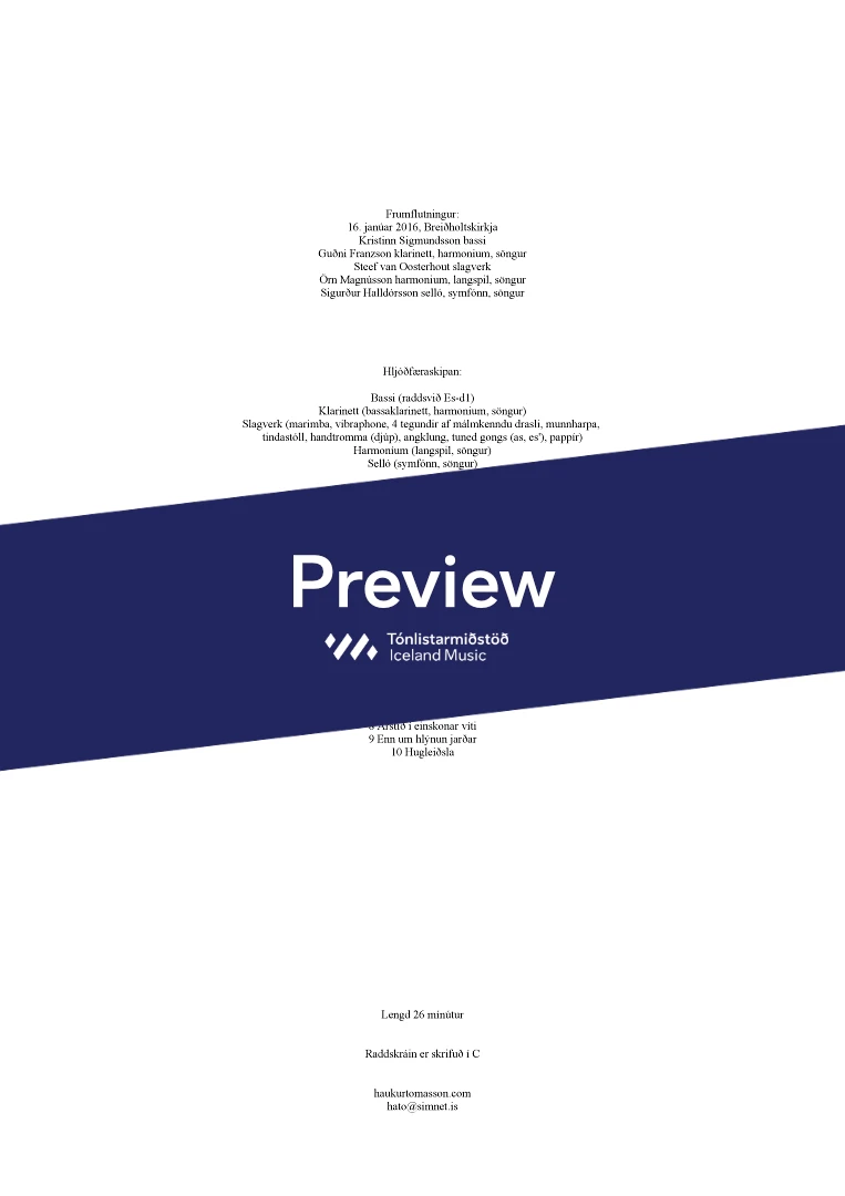 InstrumentationBass Clarinet, Percussion, Harmonium, Voice, Baritone, Cello, Langspil