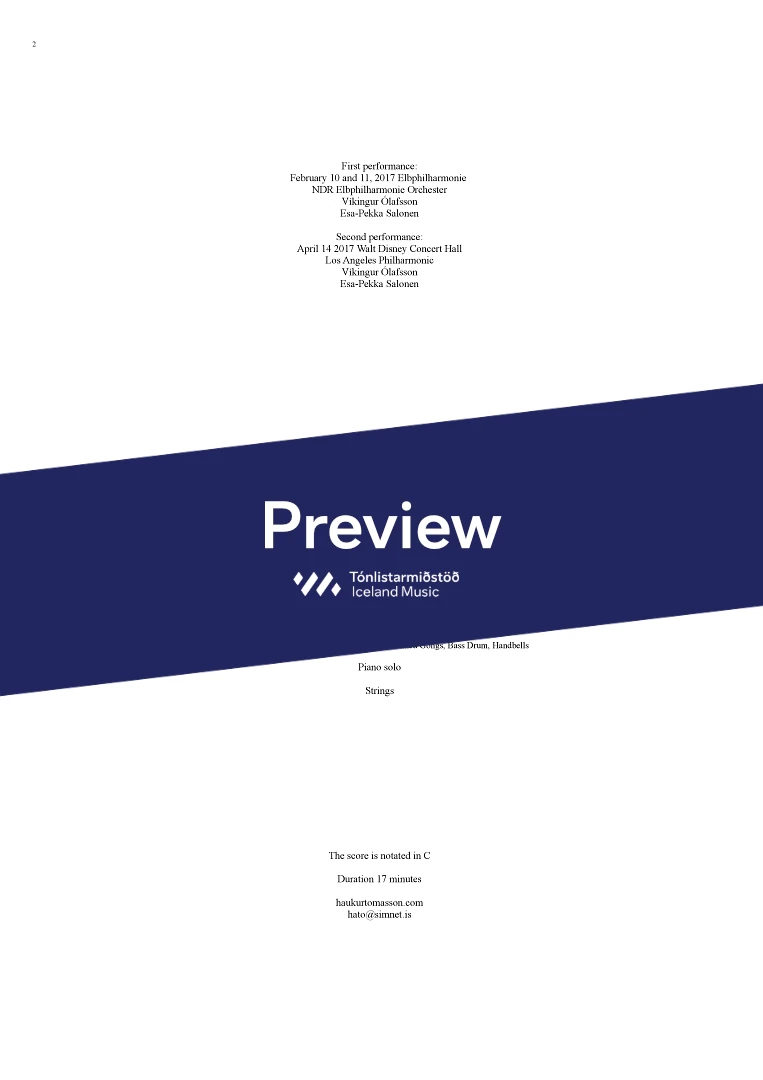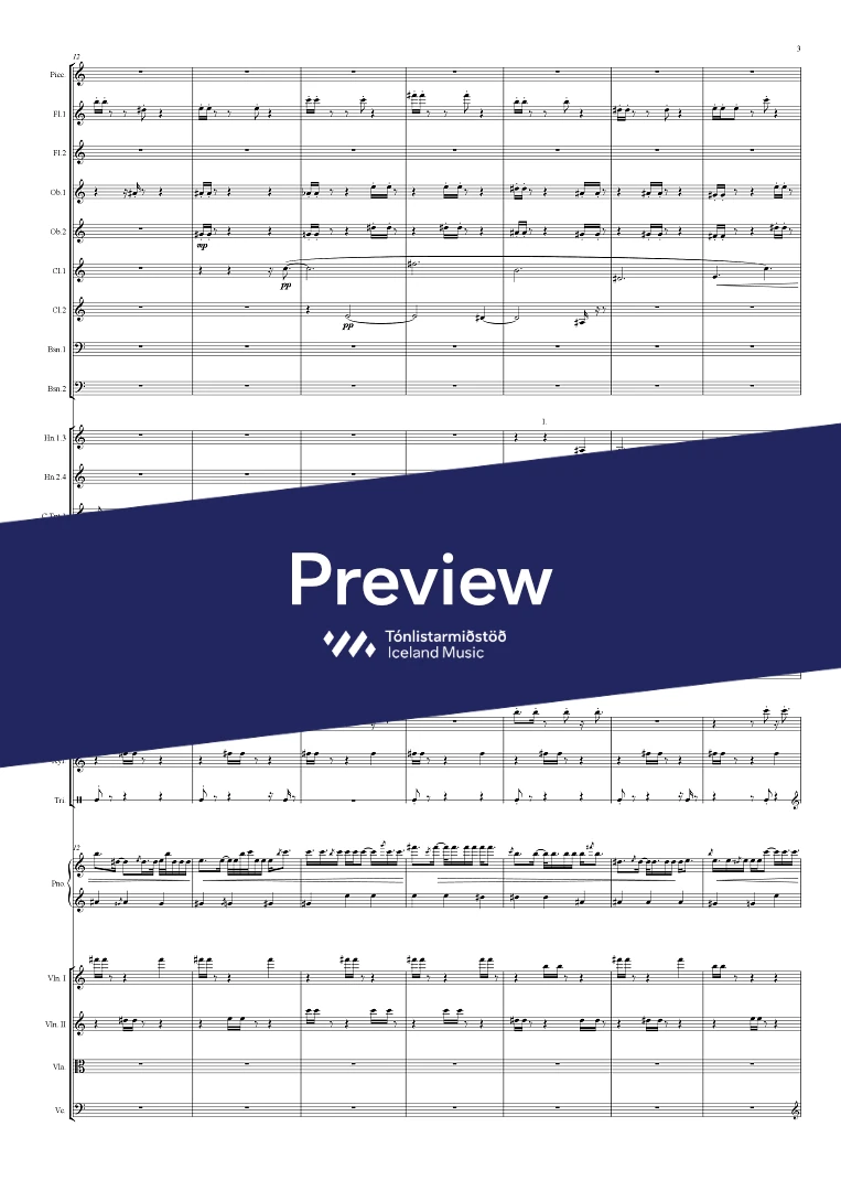 Please note that the price is for the score only. To hire orchestral materials, please contact itm@mic.is