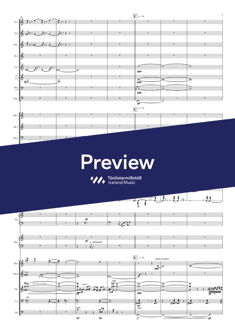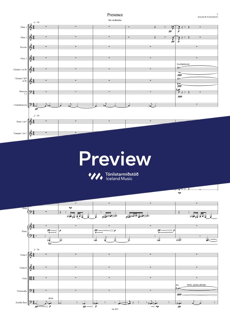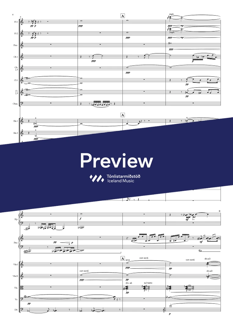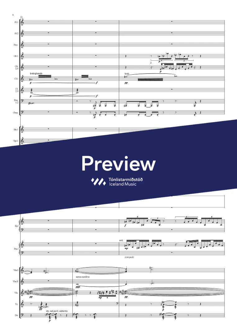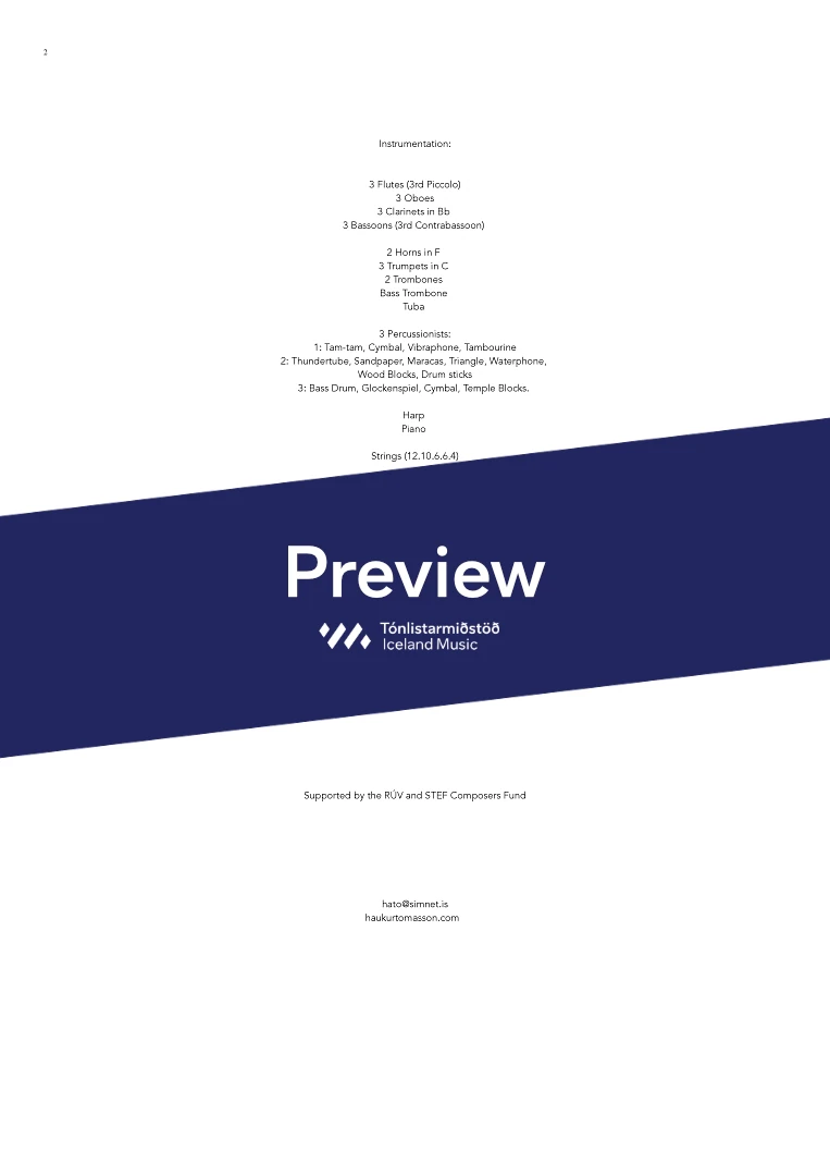 Instrumentation 3(picc.).2 (2.C-bn).2.2 - 2.2.3.1 - perc.(3) - hp. - pno. - str.